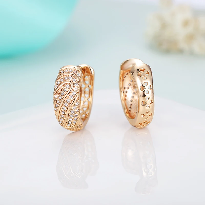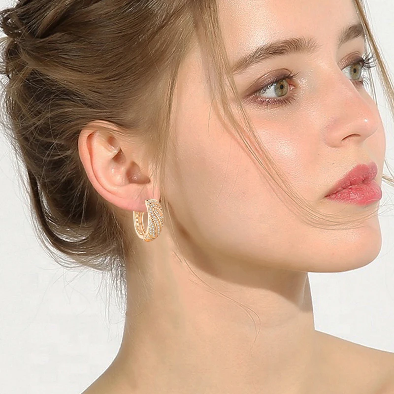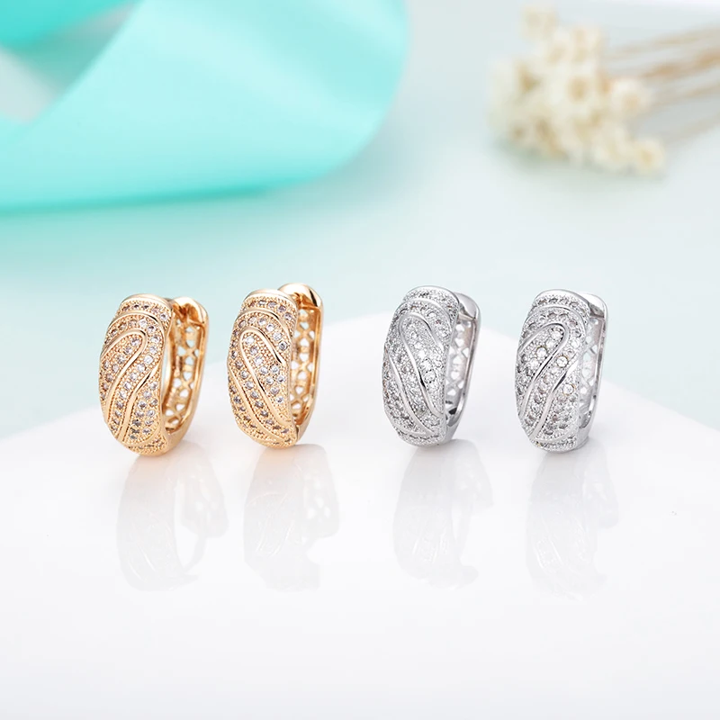 Женские винтажные серьги-кольца с голубым цирконием небольшие украшения под