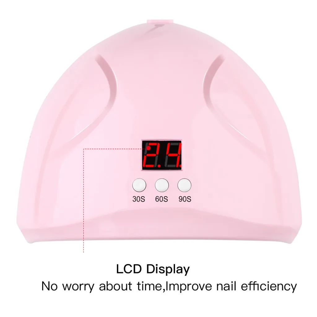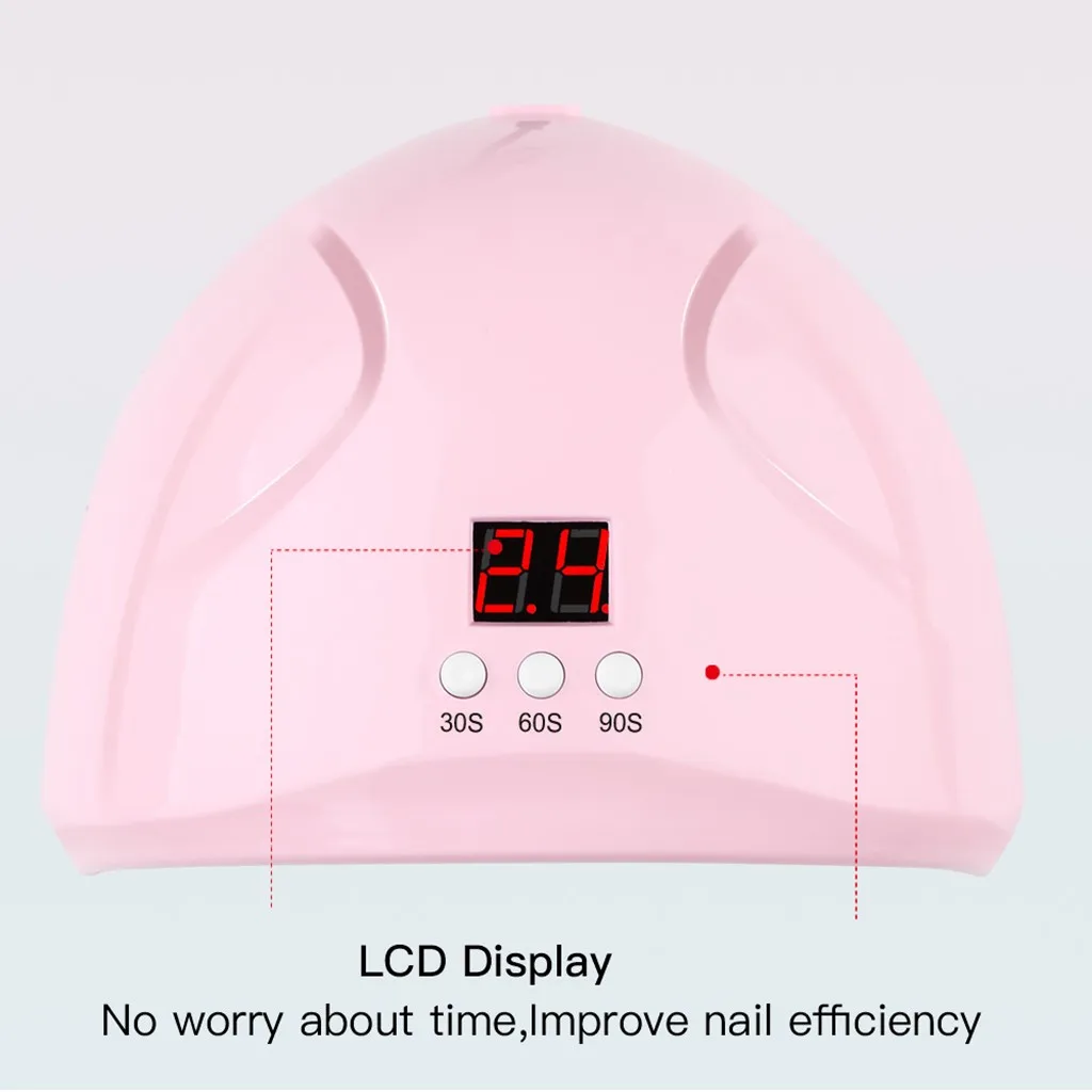 Таймер Настройки: 30S /60s/90s (для обычного простого гель-лака для ногтей требуется только 5s, Это занимает приблизительно. 30s для сушки ногтей УФ-клей и 60s для сушки Стразы драгоценный камень клей)