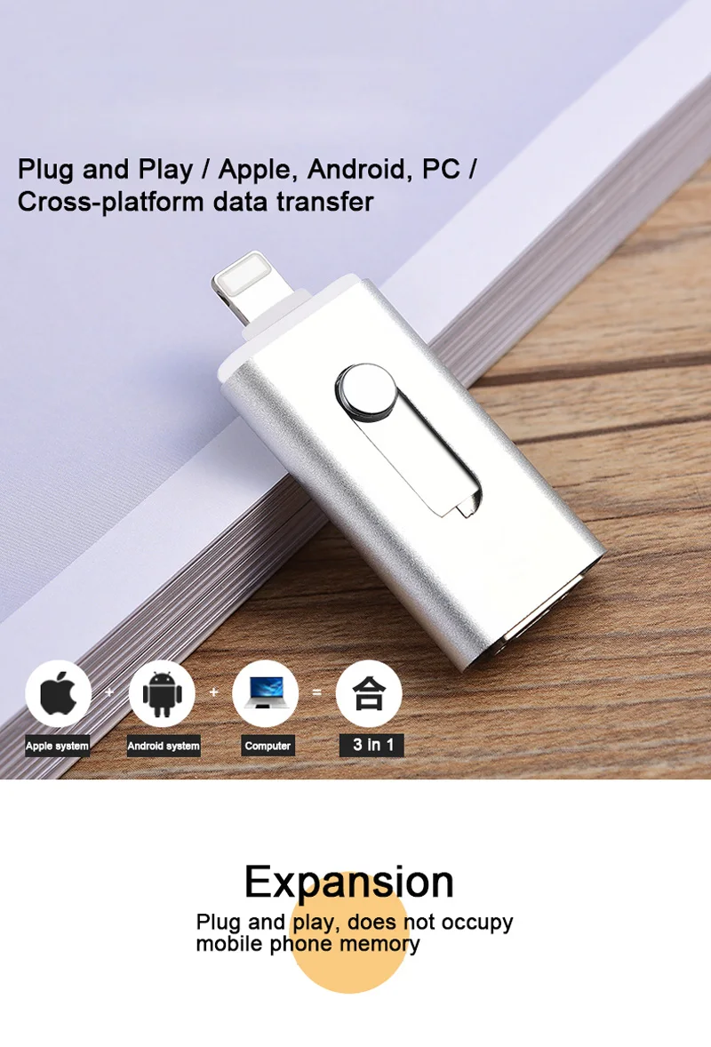 3 в 1 USB флеш-накопитель OTG с тип-c 64 Гб 128 ГБ флеш-накопитель для apple iphone карта памяти 16 Гб Android Флешка USB 3,0 32 Гб