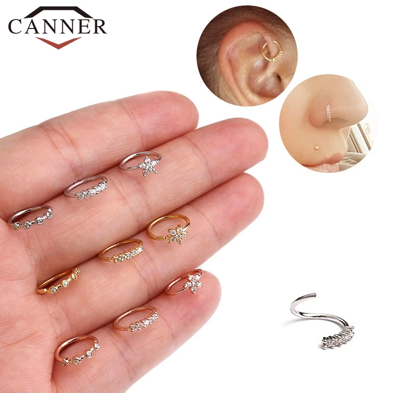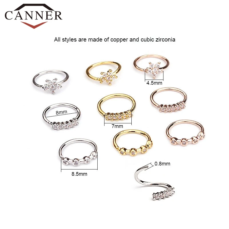 1 шт. золото/розовое золото/серебро Цвет 20 г x 8 мм пирсинг носа ювелирные изделия Cz Нос Обруч ноздри кольцо цветок спиральный для хряща серьги