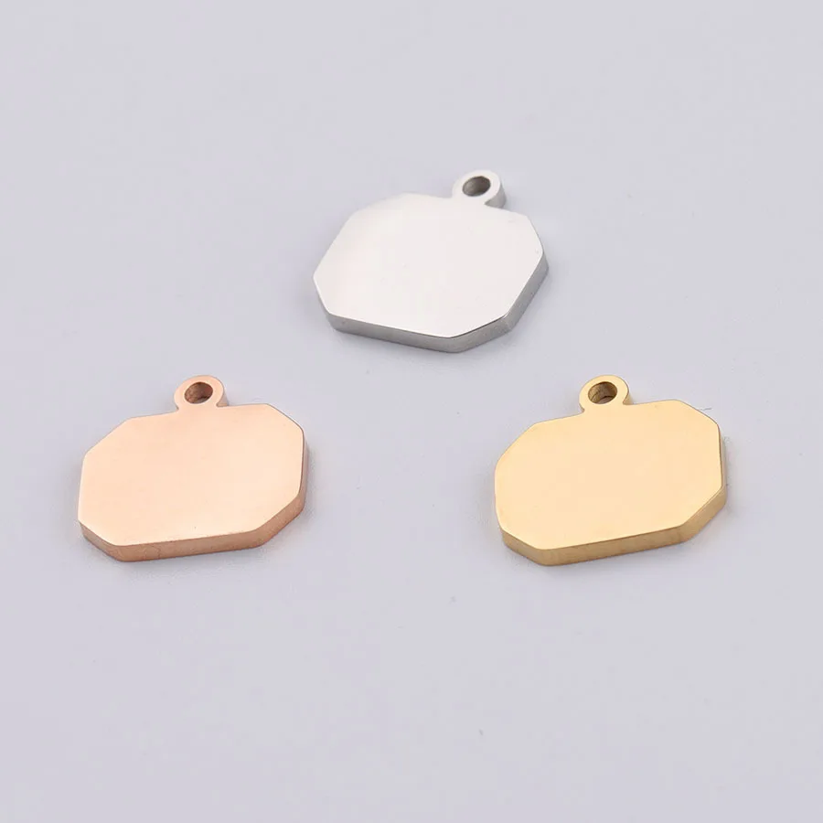 Серебро/золото/розовое золото из нержавеющей стали пустой прямоугольник очарование для гравировки восьмиугольник металлическая бирка зеркальная полировка оптовая продажа 20 шт