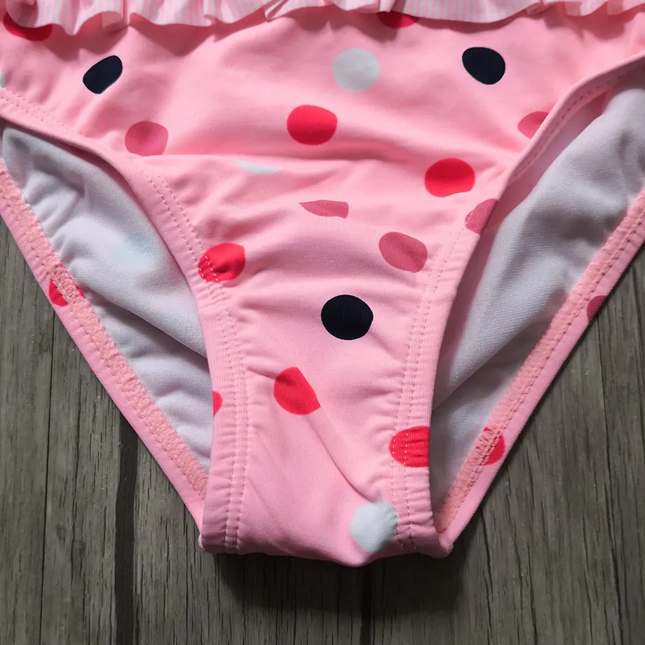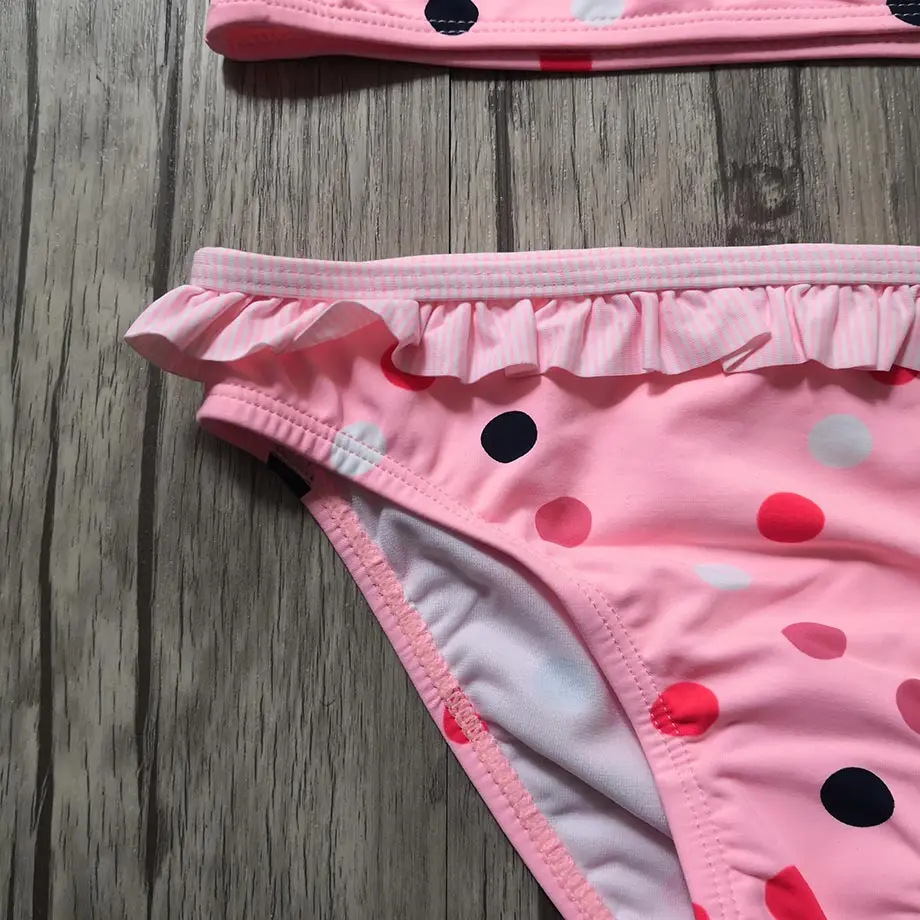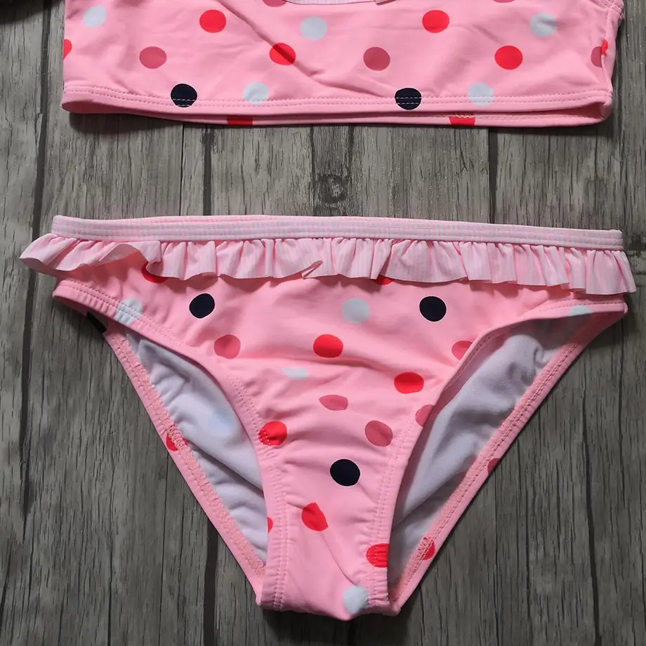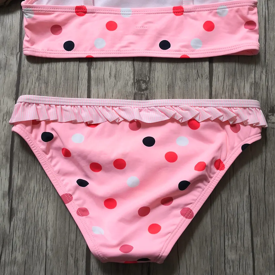 От 5 до 12 лет купальный костюм в горошек для девочек, детский купальный костюм из двух предметов, комплект бикини с оборками для девочек, розовый купальный костюм детская одежда для купания для девочек