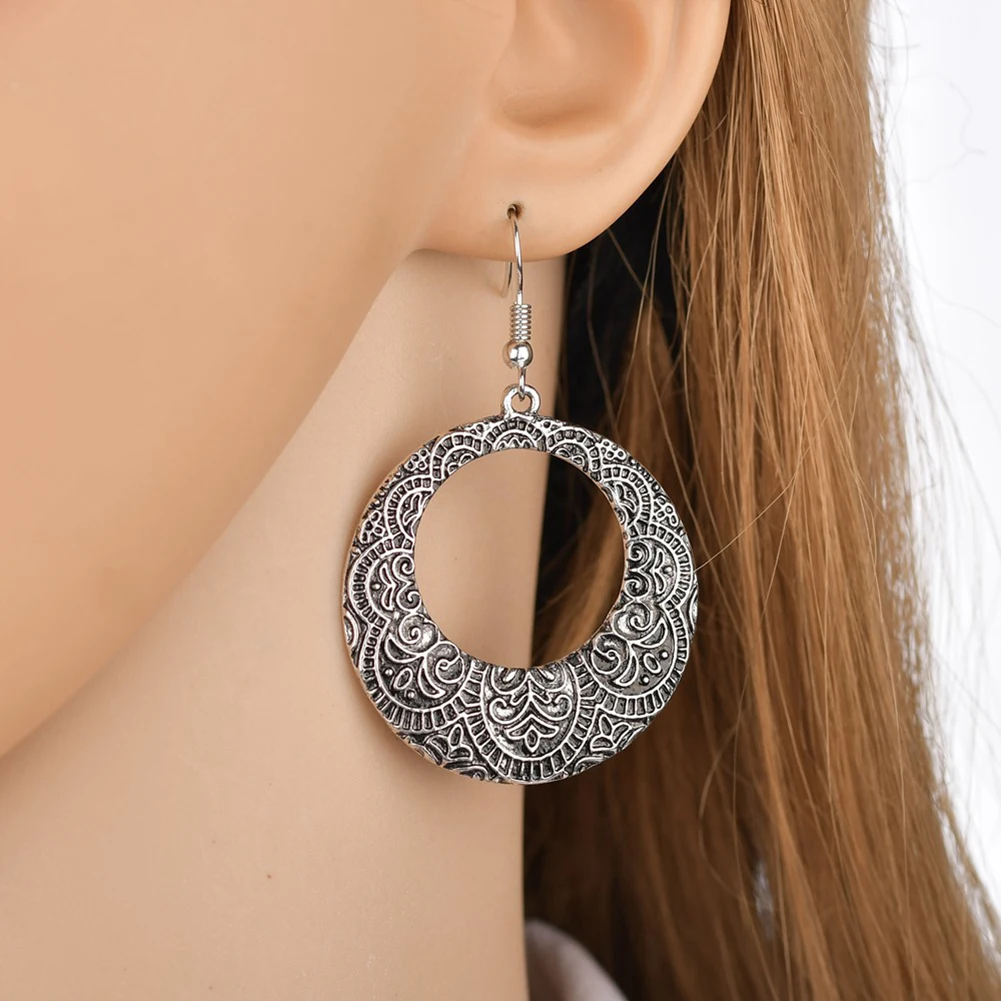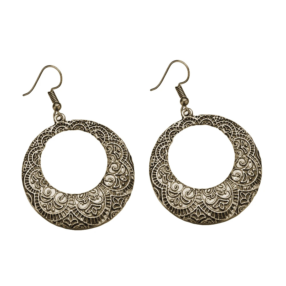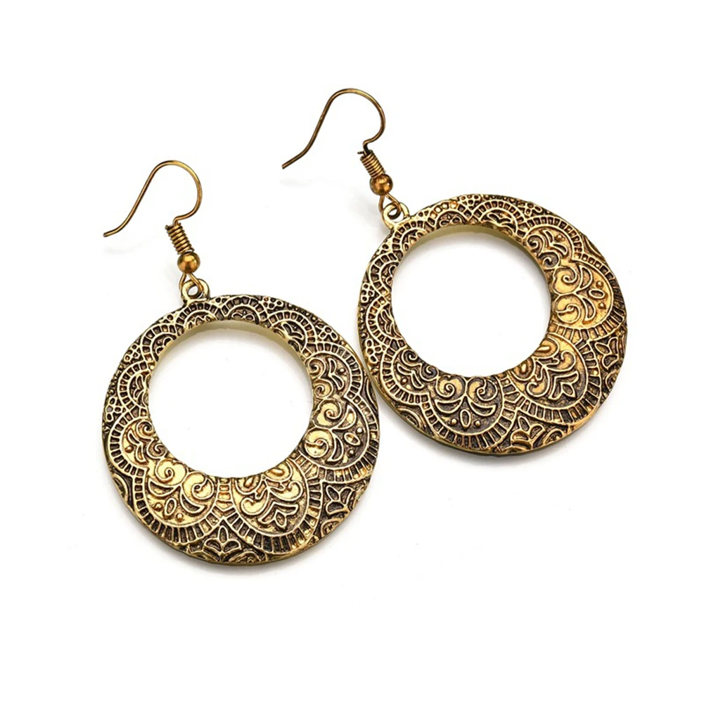 Женские Цветочные Резные полые большие круглые висячие серьги на крючках эффектные ювелирные изделия