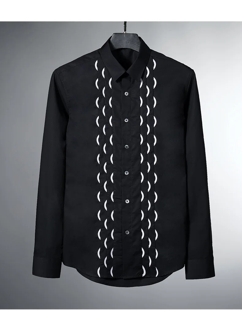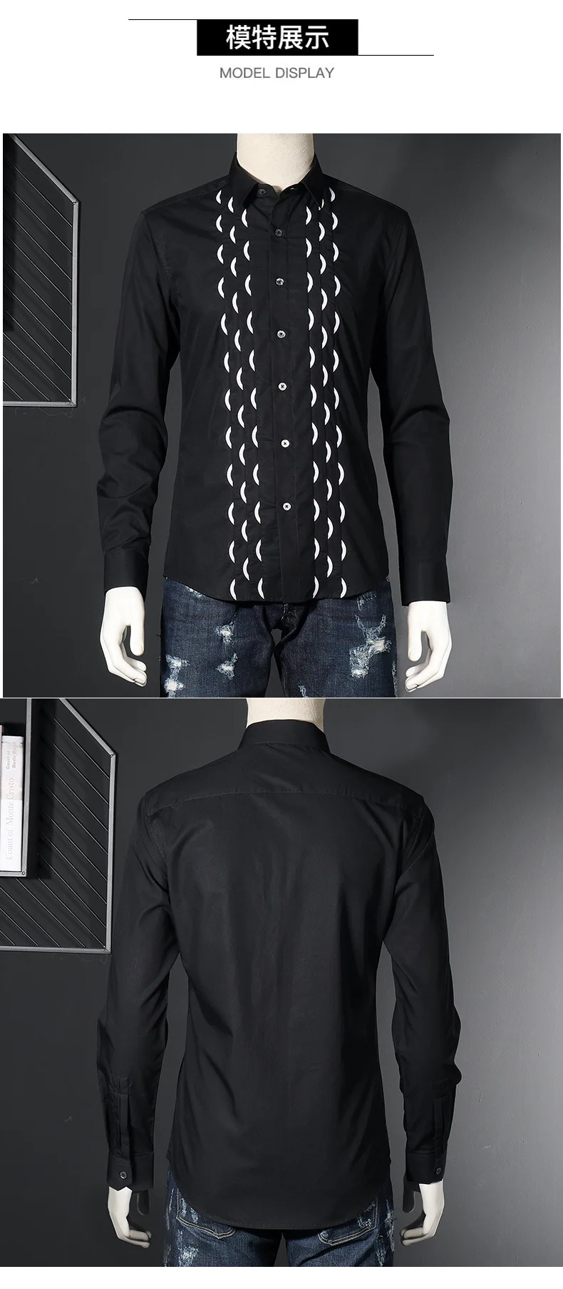 Название:2019 брендовая мужская рубашка Повседневная рубашка с длинными рукавами и вышивкой Мужская однотонная тонкая Chemise homme деловая, общественная мужские рубашки