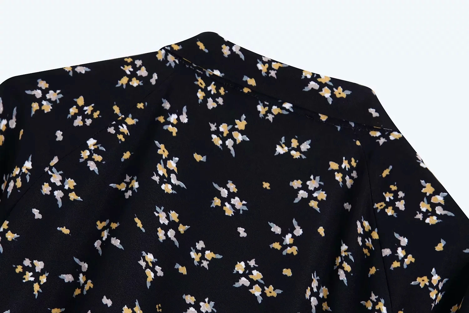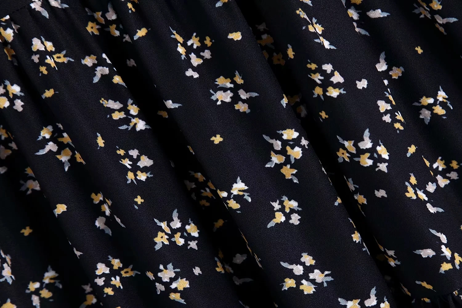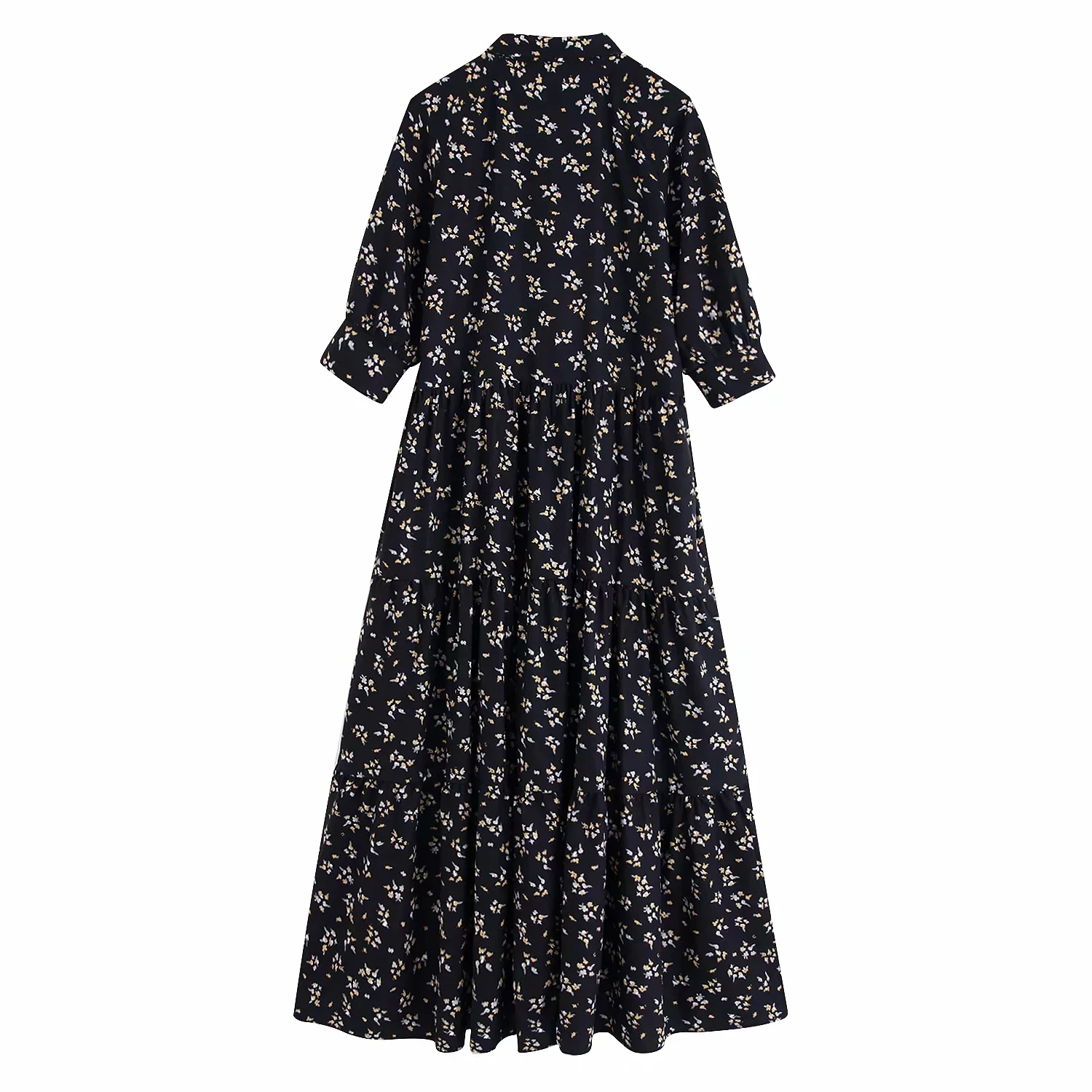 Женское плиссированное платье za botton, желтое платье с коротким рукавом, отложным воротником и высокой талией, Осеннее черное платье с цветочным принтом