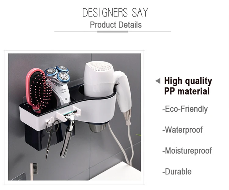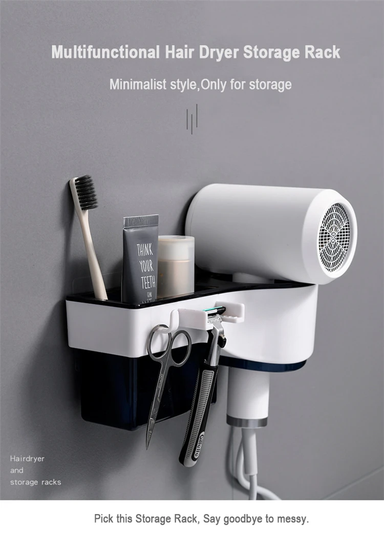 Продукт: многофункциональная настенная стойка для хранения фена Функция: стеллаж для хранения; Сушилка для волос; подставка для бритвы Особенности: компактный, экологически чистый, универсальный Цвет: черный, темно-синий, красный, синий