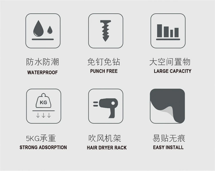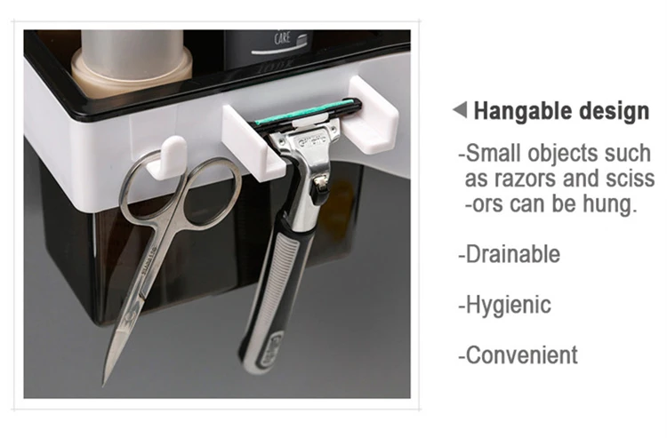 Hangable дизайн -Мелкие предметы, такие как бритвы и ножницы, могут быть подвешены; выливается; Гигиенические; удобные