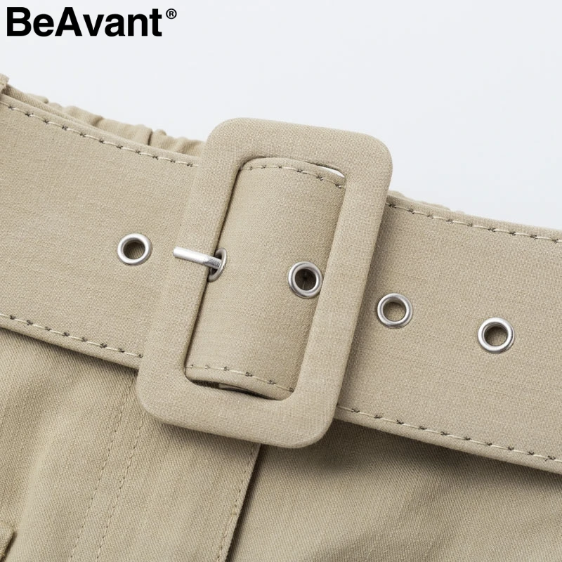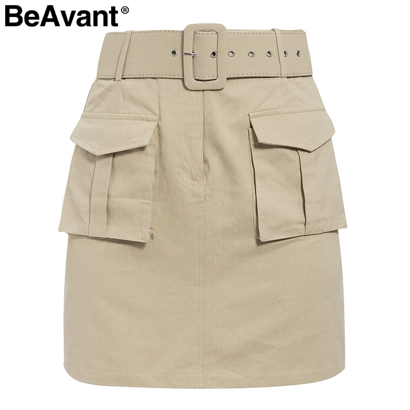BeAvant Повседневная Хлопковая женская короткая юбка с поясом, модная Осенняя женская короткая юбка с высокой талией и карманами