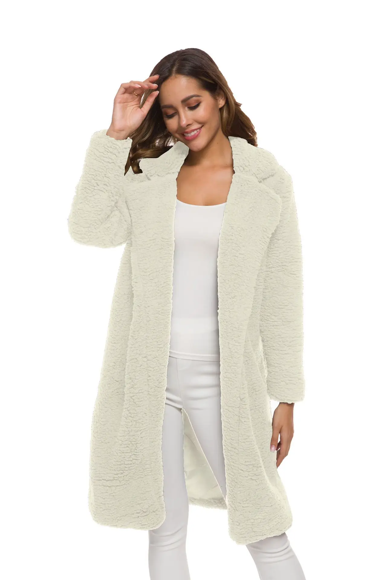 Женское вельветовое пальто с мехом ягненка, однотонная Свободная куртка с длинным рукавом, теплая верхняя одежда для зимы, 2019