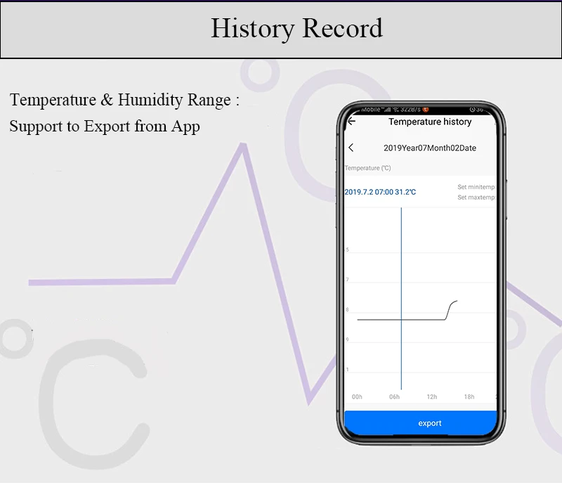 4. Исторические данные о температуре/влажности могут быть экспортированы в любое время.