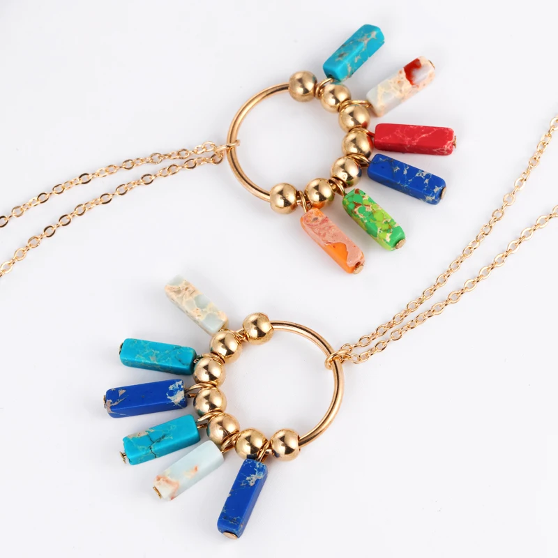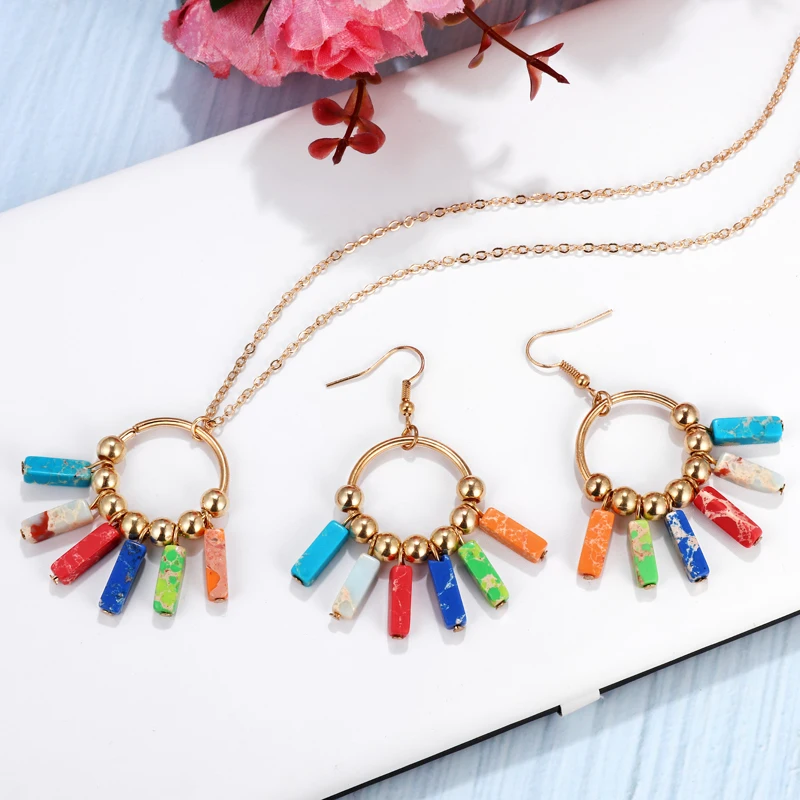 Набор ювелирных изделий для йоги чакра, цветные/синие серьги, натуральный камень, золотой цвет, бусы, серьги, ожерелье, богемные подарки, Прямая поставка