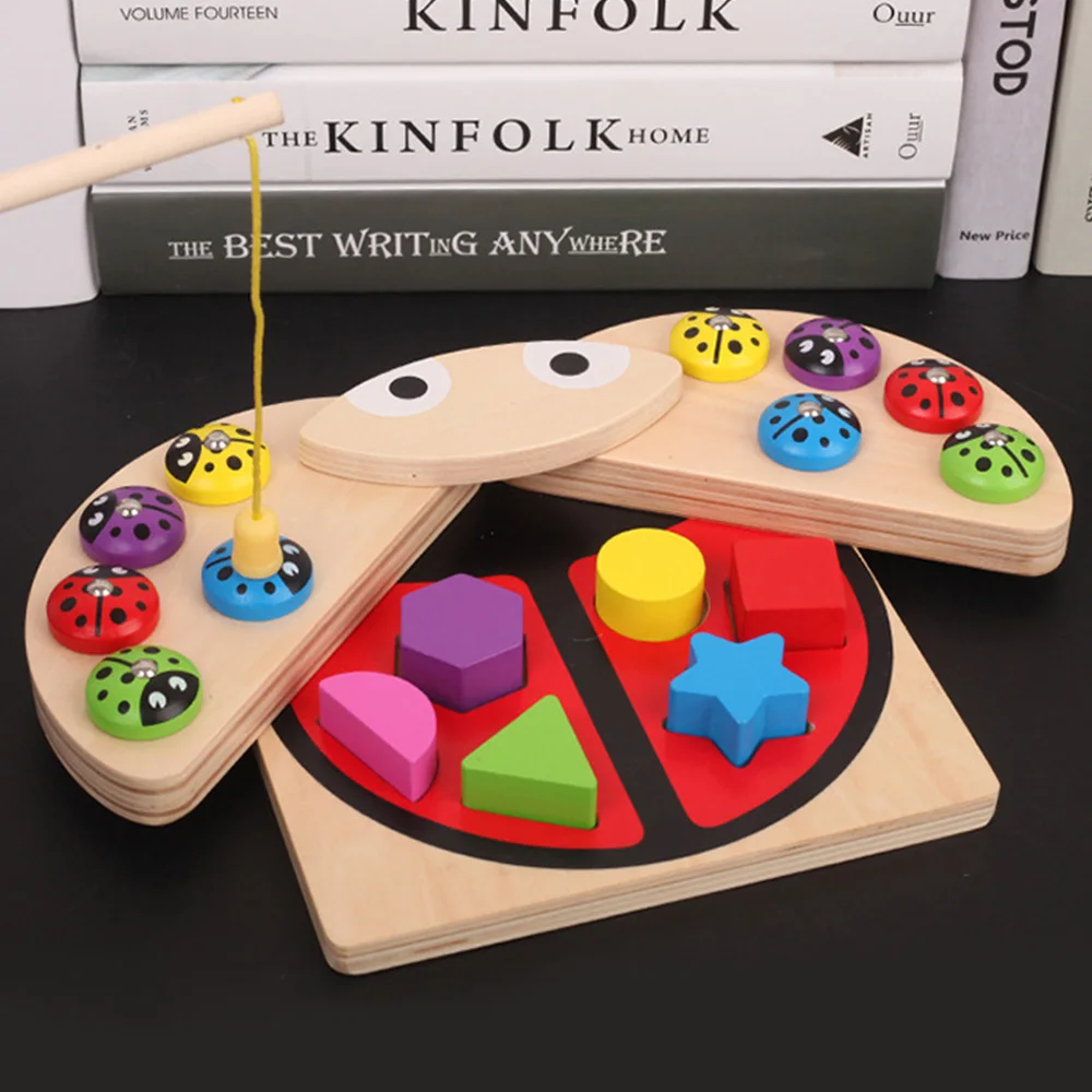 Детские деревянные игрушки Божья коровка игра рыбалка игрушки разноцветный блок формы обучения развивающая настольная рыбка игра для детей Подарки
