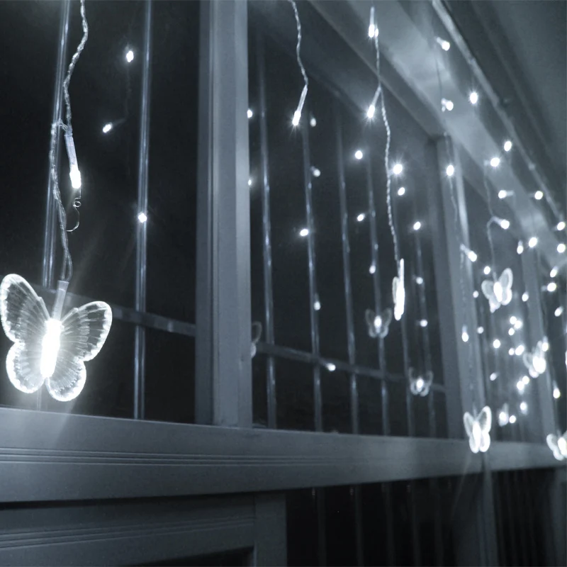 Уличный Рождественская бабочка, светодиодный светильник s, мигающий светильник s, занавес, светильник s, водонепроницаемый, для улицы, для праздника, вечеринки, подключаемый, волнистый, сказочный светильник