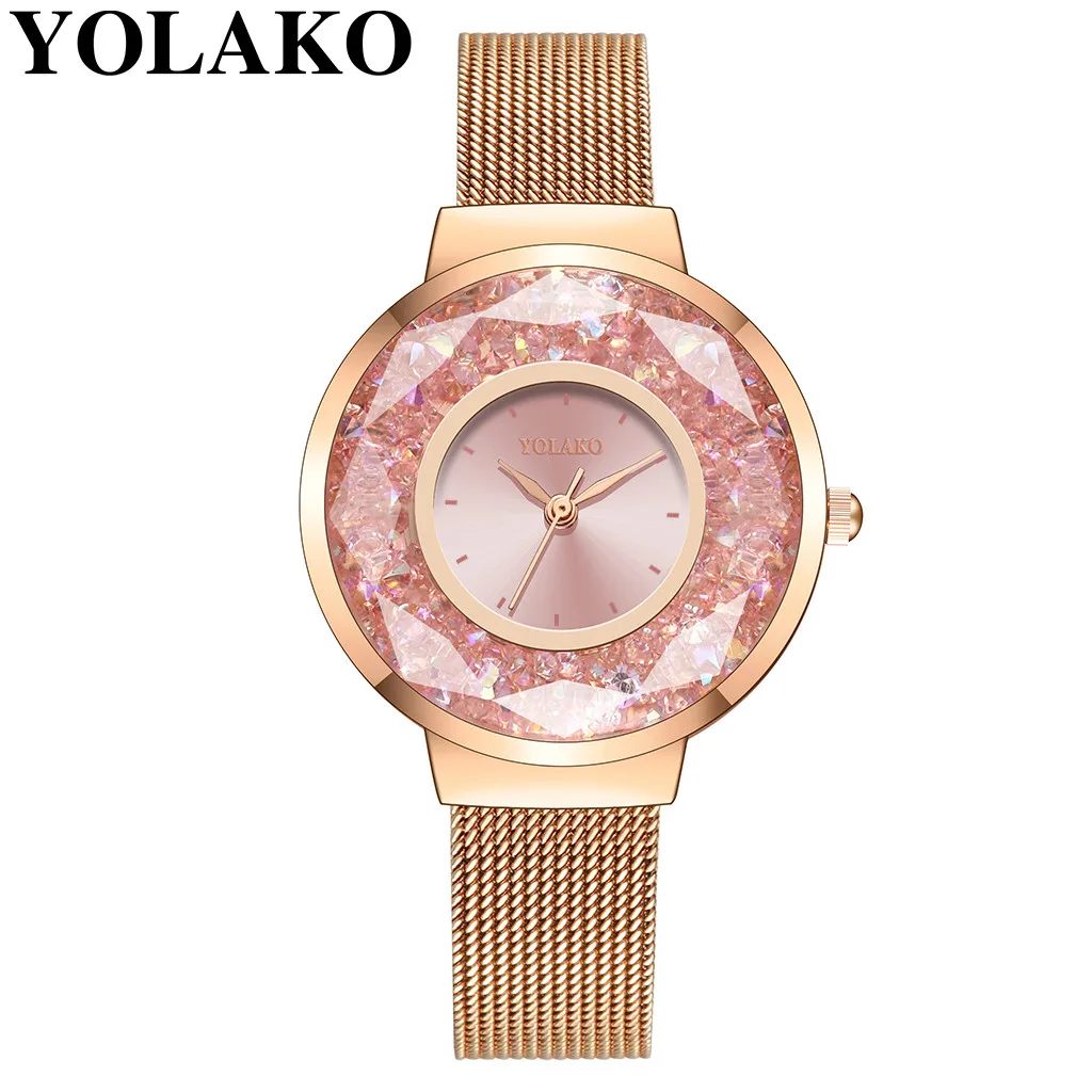 YOLAKO Женские повседневные кварцевые часы из нержавеющей стали ремешок Newv аналоговые наручные часы