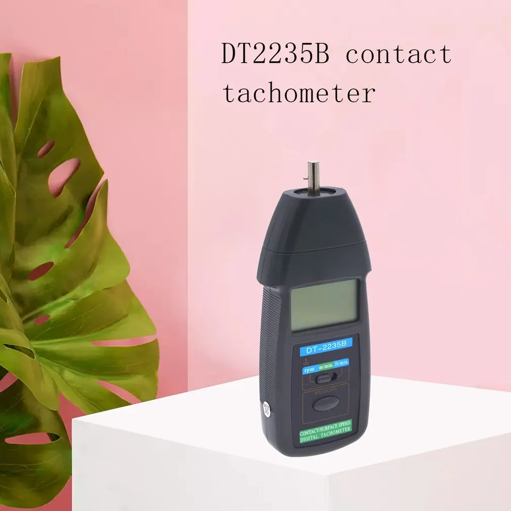 Brand NameACEHEModel NumberDT-2235BDIY SuppliesELECTRICALMeasurement unit100000015Each pack1Time basequartz crystalSize177 x 73 x 33mmColorblackAccuracy± (0.05% + 1)Low power indicationyesContact tach range0.5-1999RPM(r/min)Sampling time0.8sec(over 60RPM)Range selectauto-rangeOperating Environment0 ~ 50℃Power4 x 1.5V AA battery(not included)Display5 digits LCDSurface speed range0.05-1999.9m/min; 0.2-6560ft/min