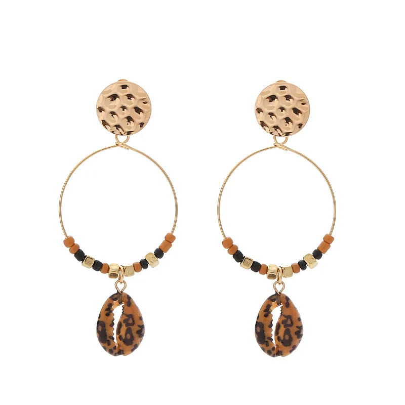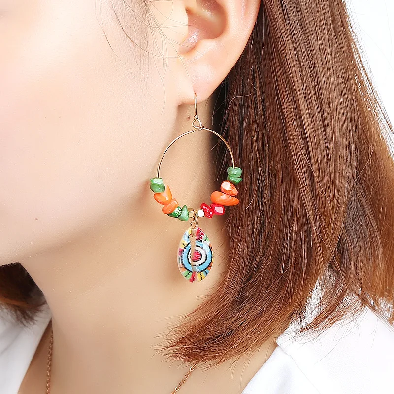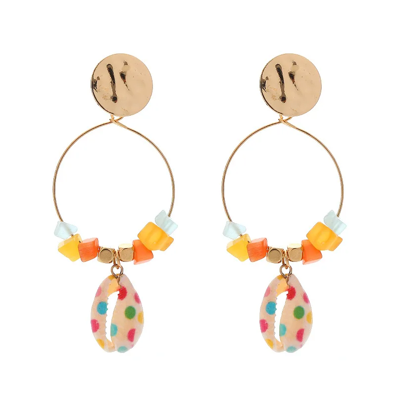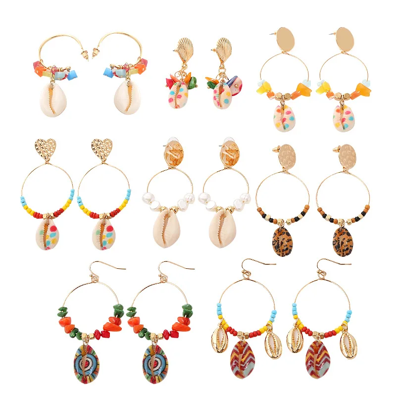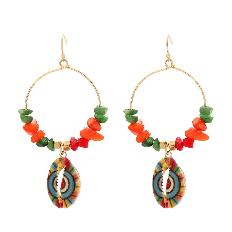 2019 New Arrival Bohemian Colorful Seadbead Cowrie Shell Drop Hoop Earring Natural Stone Earring Jewelry for Women Girl