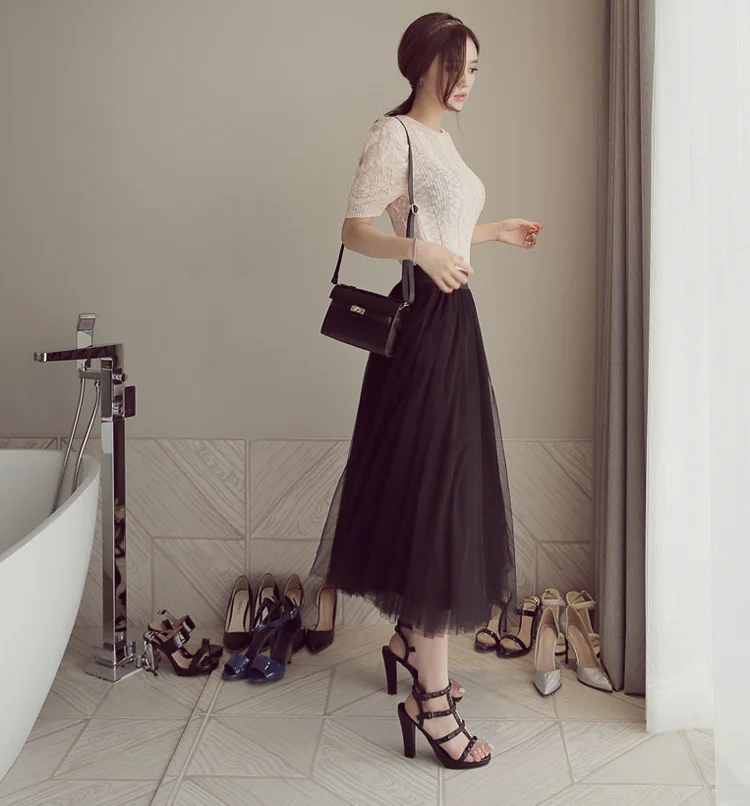 Faldas mujer moda 2019, фатиновая юбка, черная юбка, белая юбка, сетчатая миди-юбка, юбка с высокой талией, saias midi para as Femmes, jupe Enfants haute,falda mujer