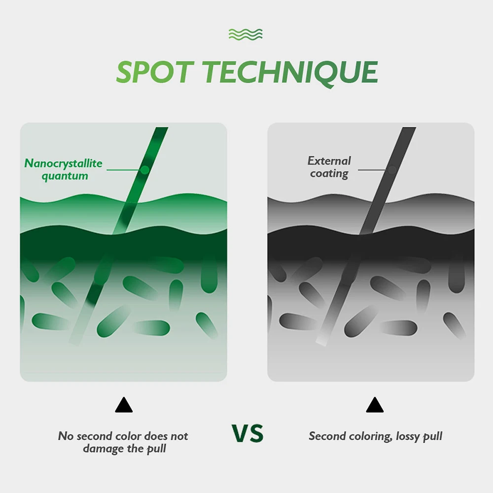 Для точечной линии, Оплетка из 4 нитей изготовлена из 3 флуоресцентных желтых волокон и 1 черного волокна. 8 нитка оплетка изготовлена из 6 флуоресцентный желтый волокна и 2 черных волокна. Оплетка 9 нитей изготовлена из 6 флуоресцентных желтых волокон и 3 черных волокон.