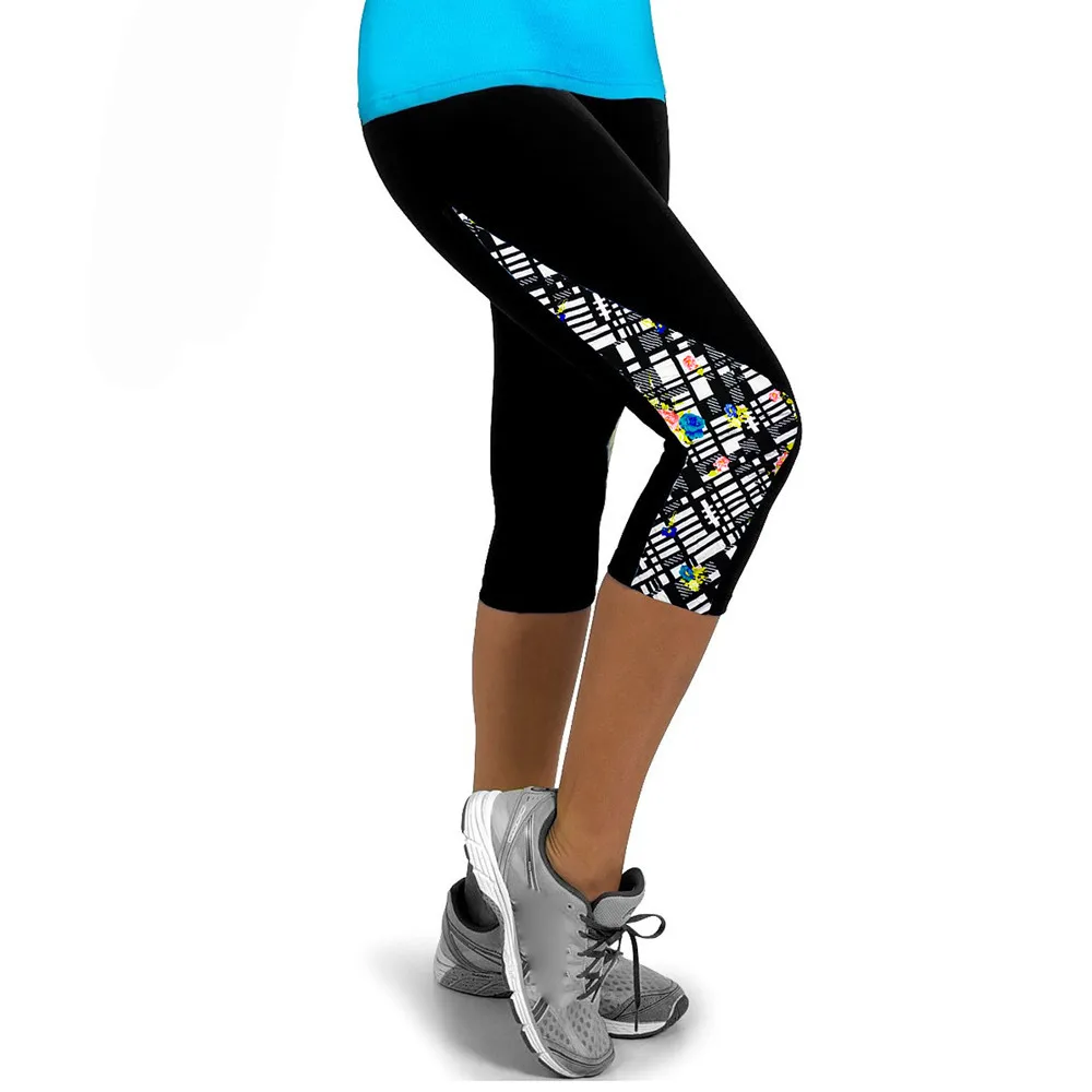 Женские штаны для йоги, леггинсы для фитнеса, Обрезанные по бокам, с принтом, стрейч, штаны, леггинсы, спортивные Леггинсы для фитнеса