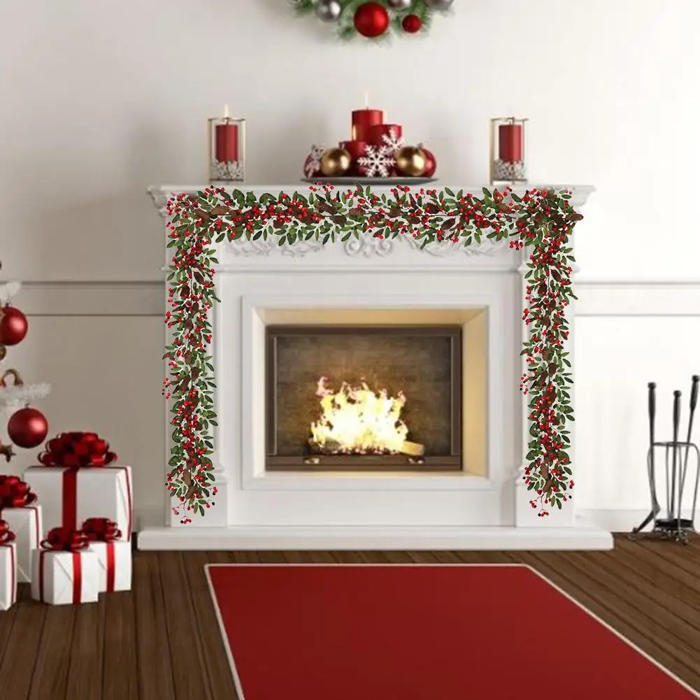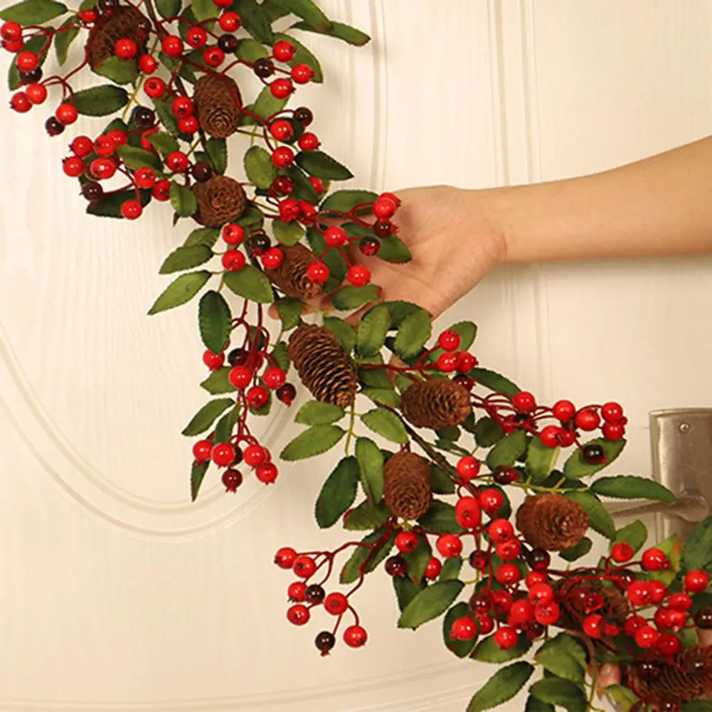 1,8 м Рождественское украшение из ротанга, сосна, красное украшение в виде фруктов, Рождественская дверь, окна, сосновые фрукты, подвеска для дома на праздник