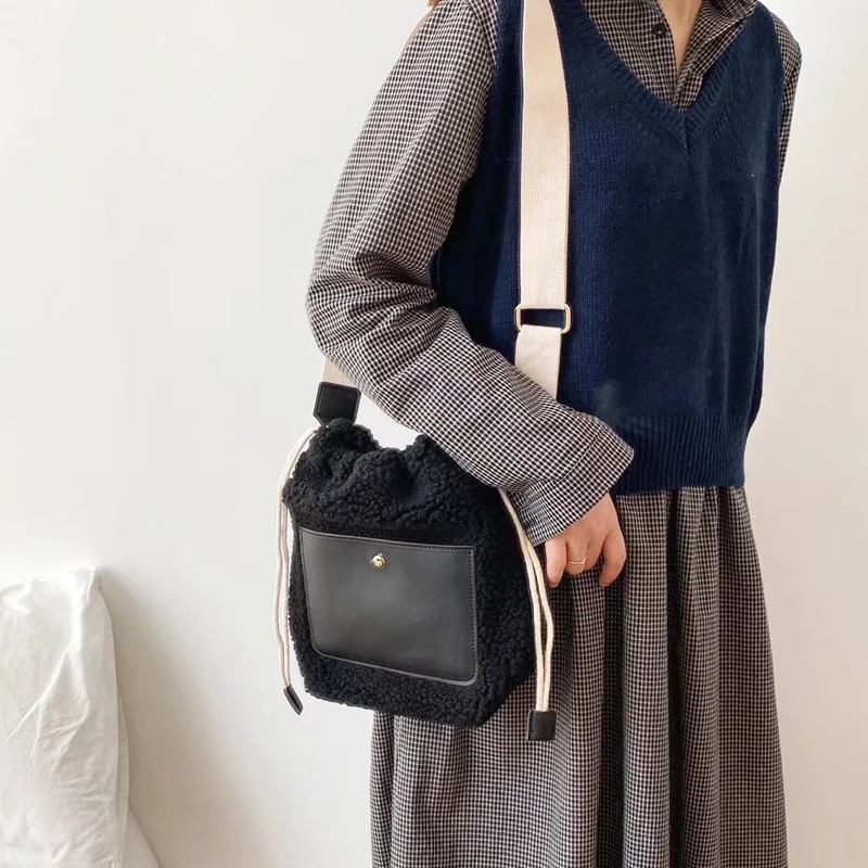 2019 зимняя повседневная женская сумка из искусственного меха, маленькая сумка на плечо из искусственной овечьей шерсти, женская сумка-мешок на шнурке, женская сумка через плечо, оптовая продажа Описание: • Пол: Для женщин • Материал: искусственный мех, овечья шерсть + искусственная кожа • Тип стиля: сумка через плечо • Закрытый способ: открытый с Кулиской • Размер: 20 см (Д) * 11 см (Ш) * 29 см (В) маленькая сумка Дизайнерская маленькая сумка-мешок Высокое качество; искусственный мех; Искусственная овечья шерсть Плечевая лента из холщового хлопка, может быть удалена Маленькая сумка, Ipad mini можно положить в Наша фабрика производит женские сумки уже более 15 лет. Эти фотографии сделаны нами, все они настоящие Примечание: Из-за отличий дисплея может быть небольшая разница в цвете
