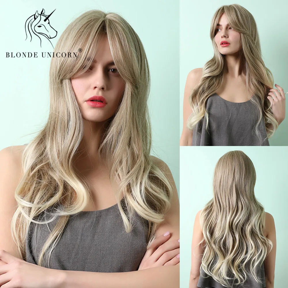 Блонд Единорог Омбре светильник пепельно-коричневый блонд волнистый синтетический парик для белых и черных женщин Повседневные Вечерние с высокой плотностью температурного волокна