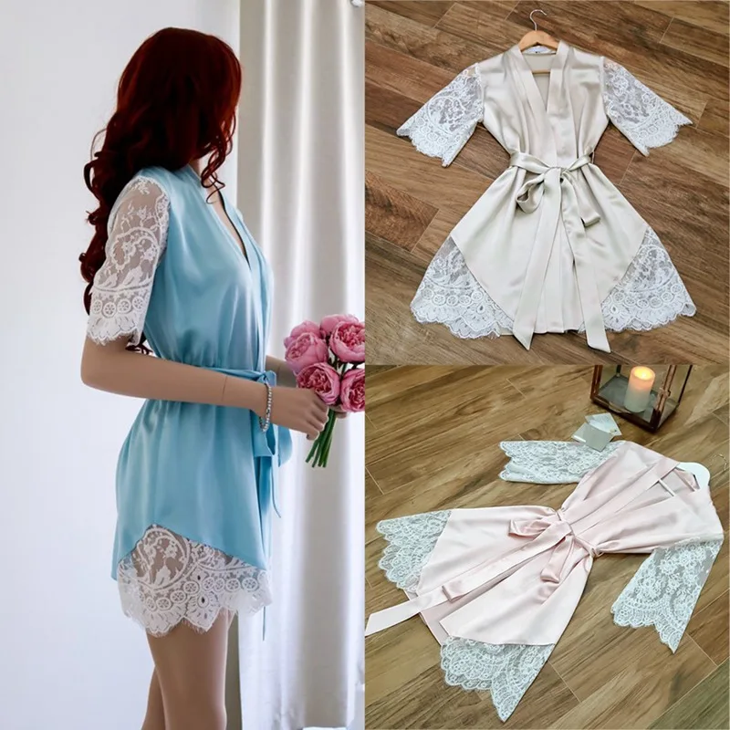 5. Привлекательный внешний вид, универсальный стиль, гладкая ткань из молочного шелка в сочетании с мягким кружевом, тонкий пояс.