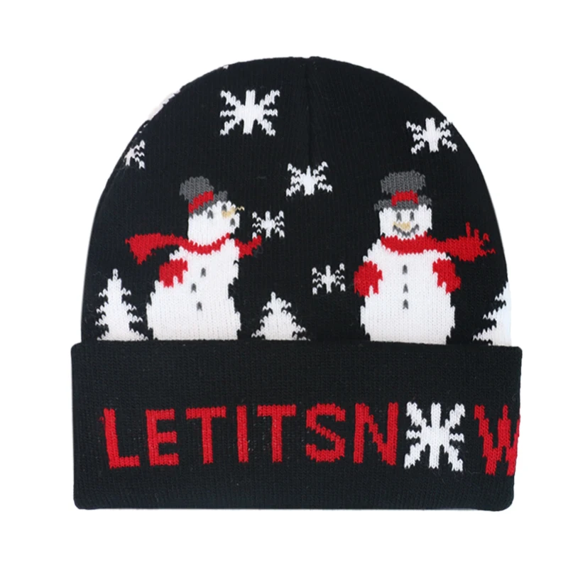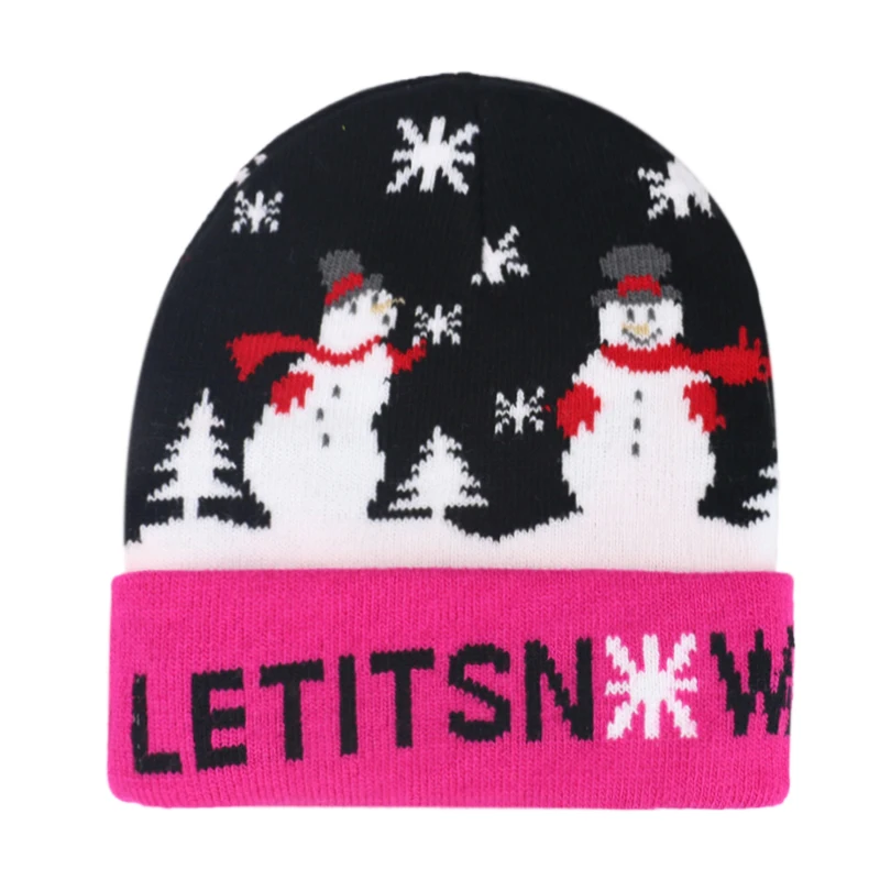 FOXMOTHER новинка, модная детская одежда Детский черный, розовый "Снеговик" LET IT в рождественском стиле с зимним принтом Beanie шапки для мальчиков и девочек на зиму, шапка