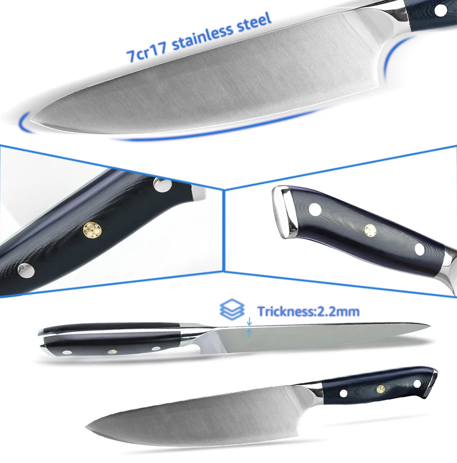 2. Резка различных видов пищи, острые края, легкий и удобный нож из нержавеющей стали. Идеальный Кухня Ножи предназначен из высокое качество Нержавеющая сталь лезвия.