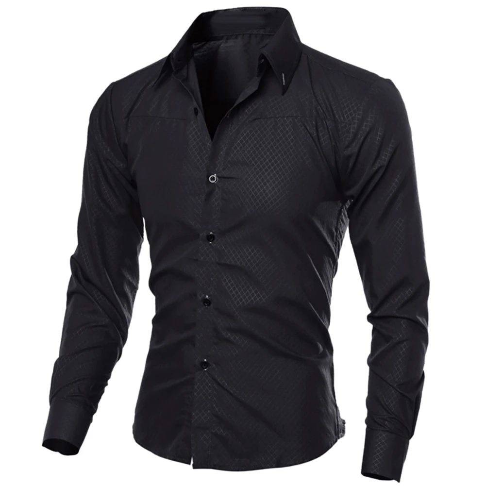 2019 новые модные мужские Однотонная рубашка с воротником с длинным рукавом цельные бесшовные трусики для Рубашка Горячая распродажа! в обтяжку Классическая рубашка