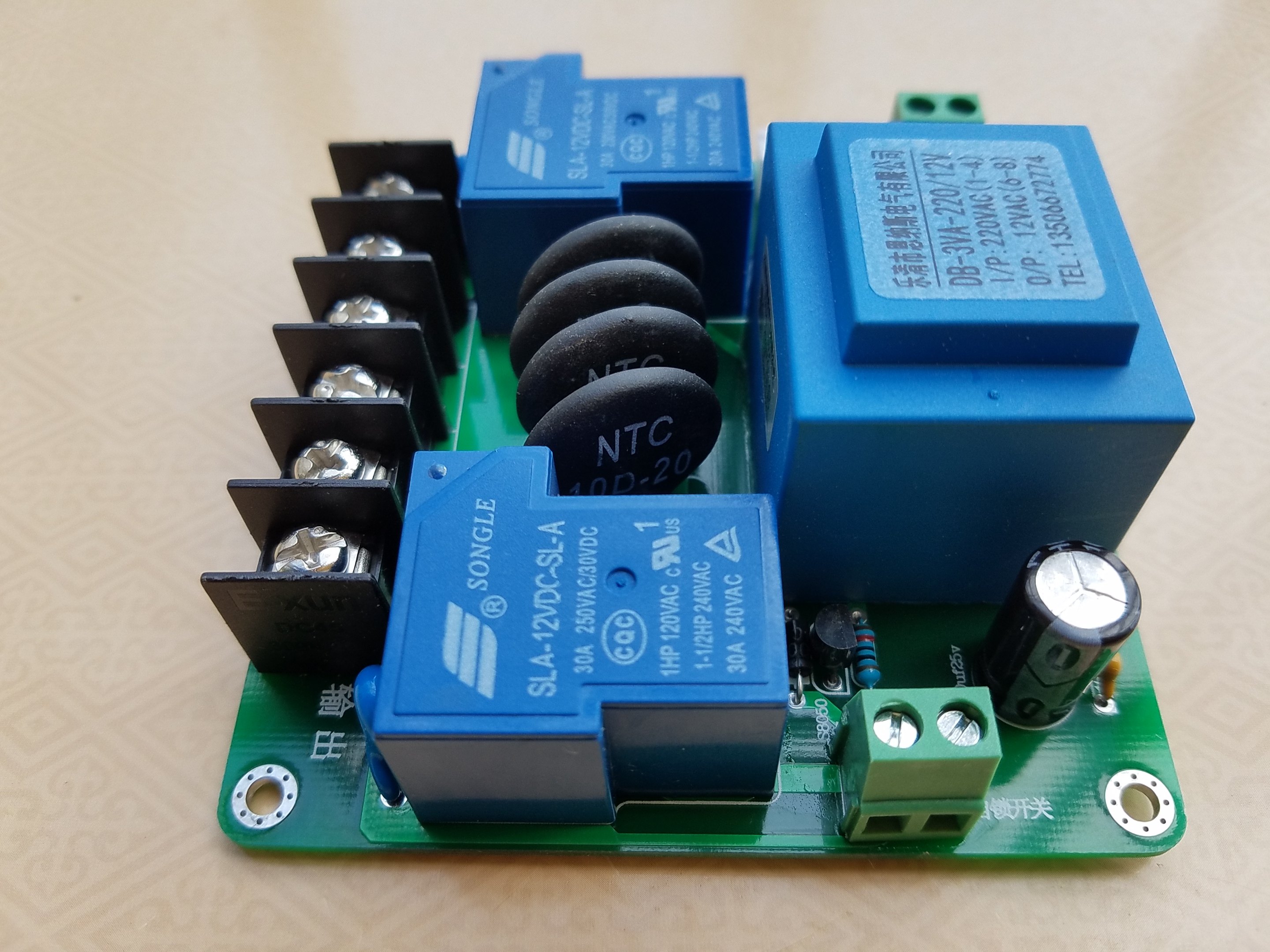 Замедленная защита от ударов принцип пуска питания: включение (ac220в) питания, после короткого замыкания, один из реле 30A закрыт, так что термистор соединен в серии, и основное реле 30A включено через 2-3 секунды! Вся (ac220в) мощность включена!