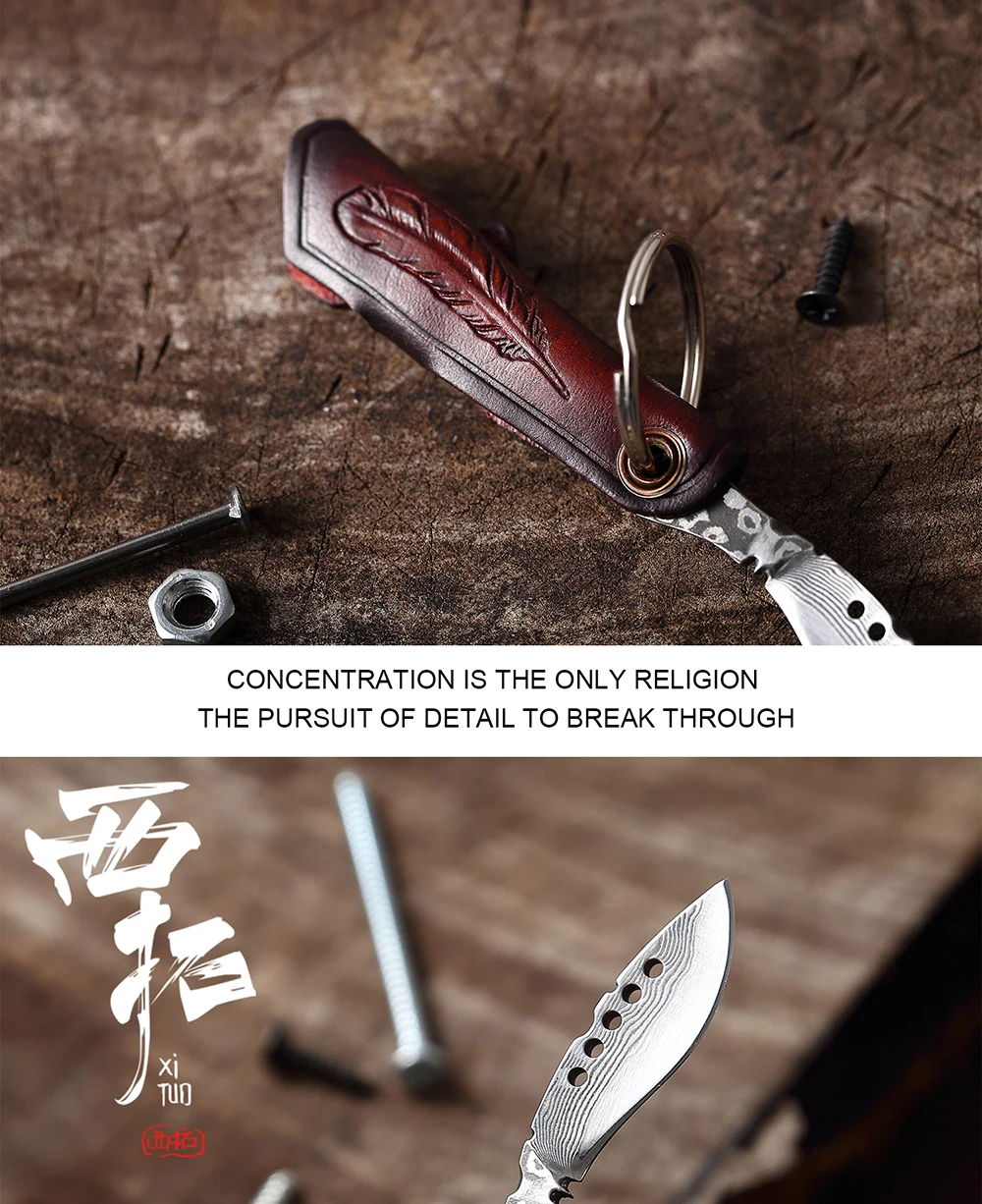 XITUO нож для фруктов дамасский складной кухонный шеф-повара с кожаной ручкой