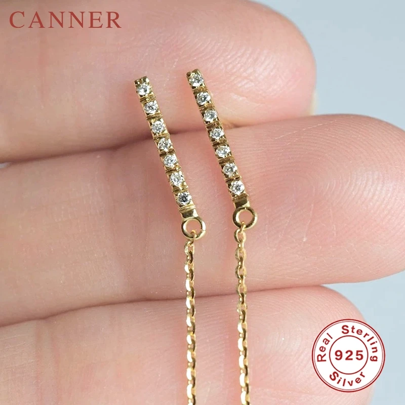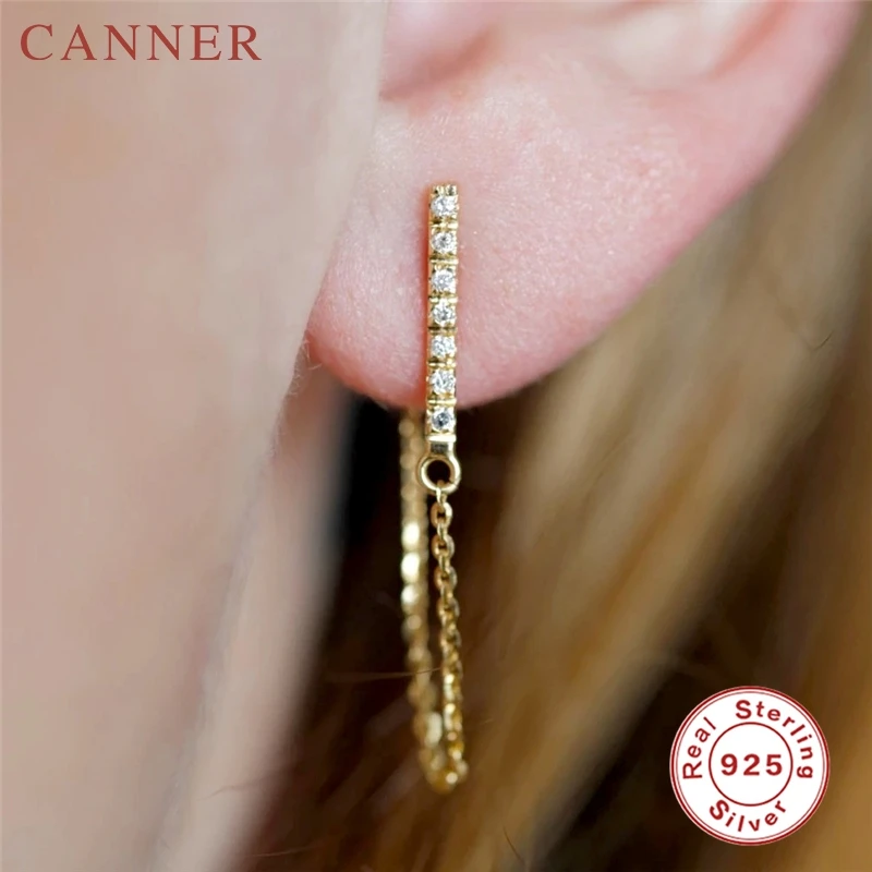 925 Sterling Silver Charming Zircon Stud Earrings for Women Gold color Chain Tassel Earrings Fashion Jewelry Gift Drop Shipping
