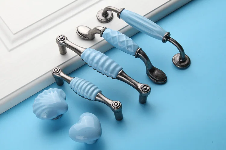 96 мм 128 мм синяя оболочка мебельная керамическая ручка