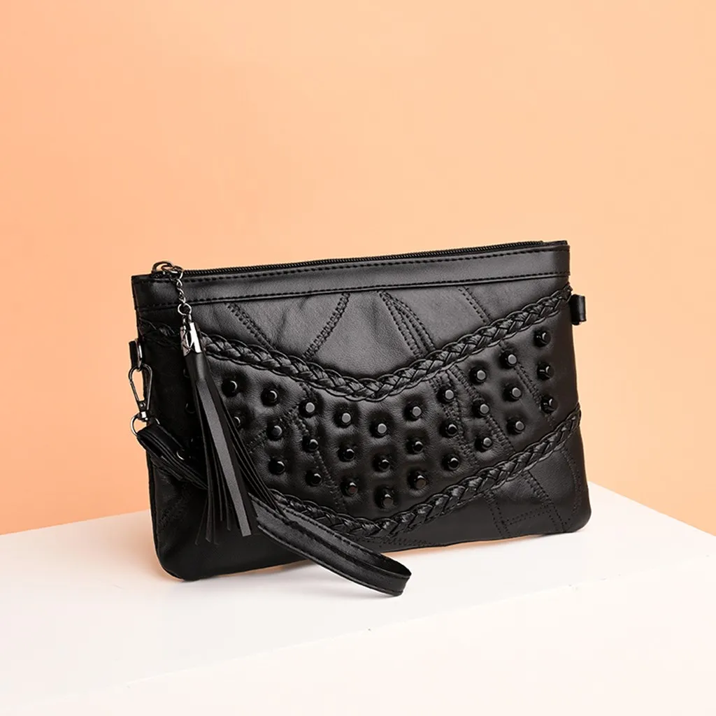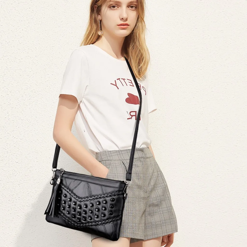 Модная женская уличная однотонная кожаная сумка через плечо с кисточками