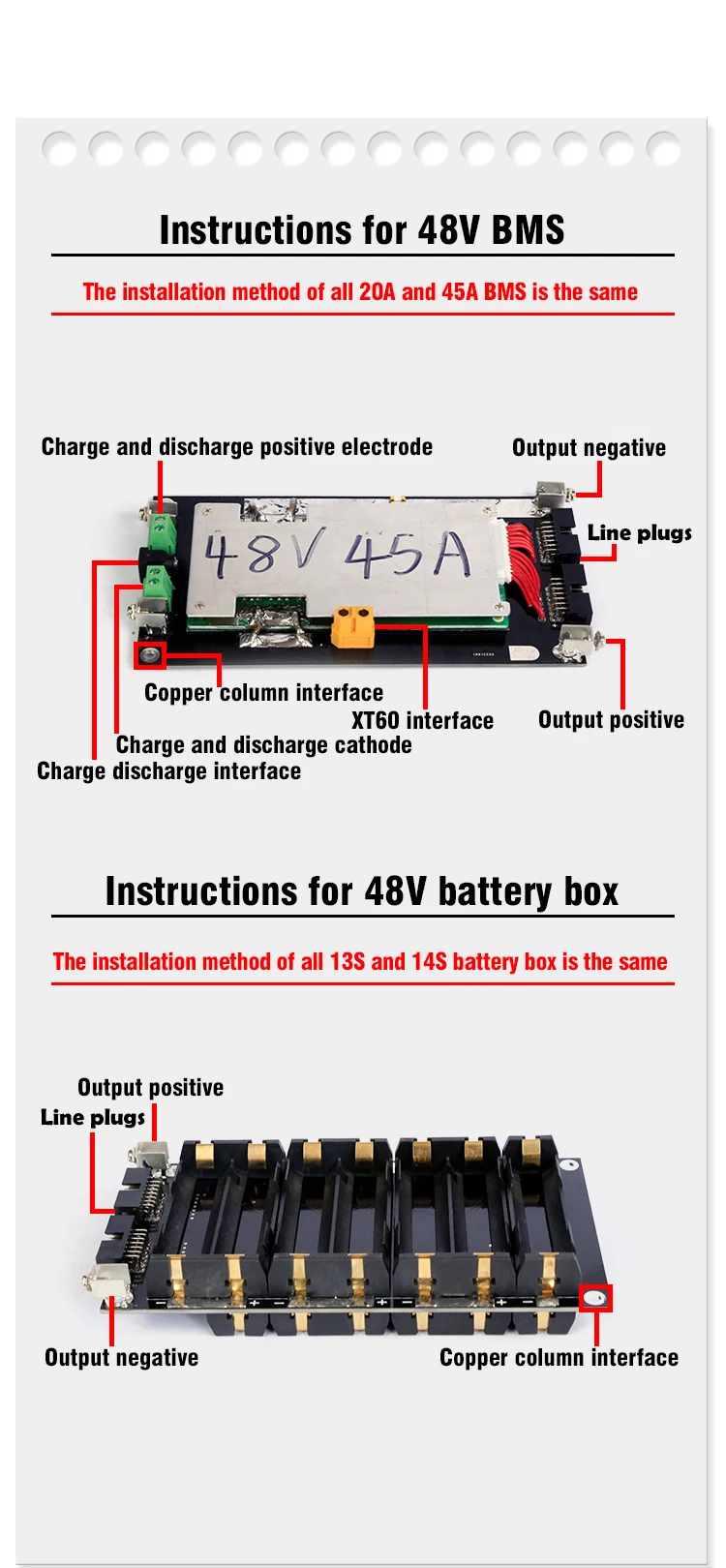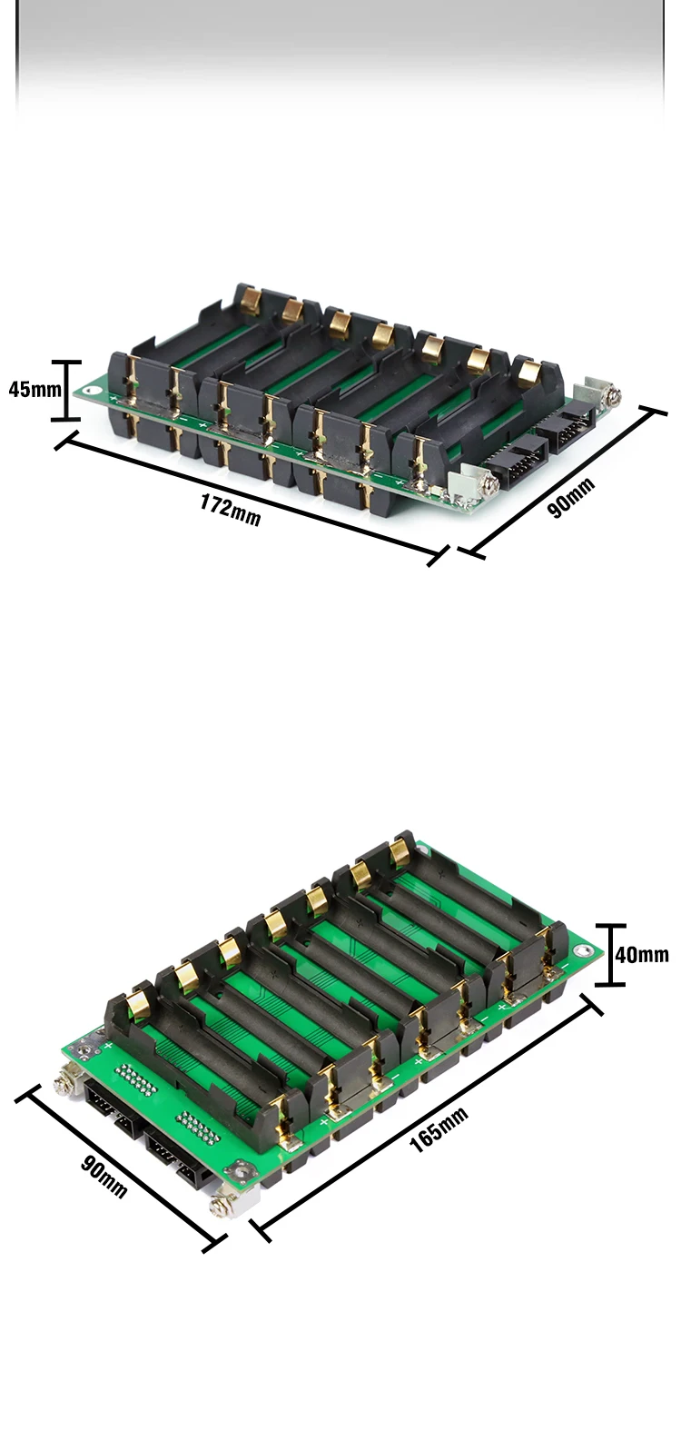 У нас есть два для вас, 20 А и 45 А. По объему 45А намного больше 20А, но функция аналогичная. Если нет особых требований к высокой мощности, рекомендуется 20 А. Защитные пластины обладают функциями защиты от заряда и разряда, защиты от тока разряда, защиты от перегрева, равновесия напряжения и импульса баланса. Каждая монтажная плата имеет страховой полис 15а. Если одна батарея имеет проблему, это не повлияет на другие батареи