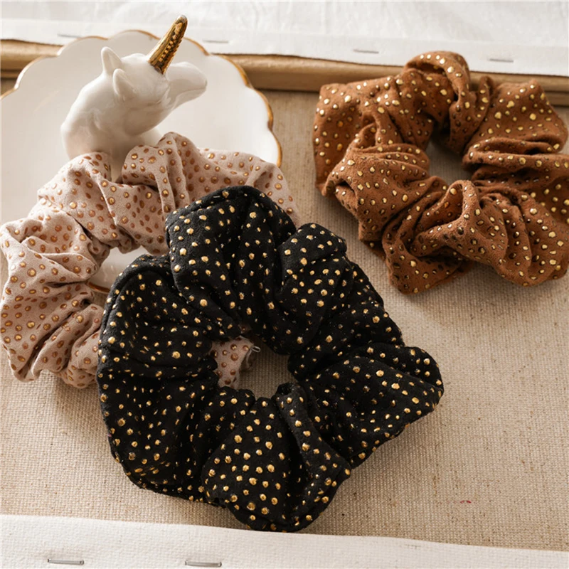 Резинка для волос в стиле панк золотой с заклепками и эластичным конским хвостом