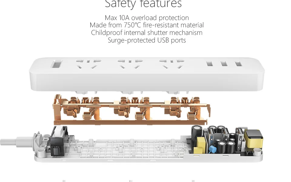 Original Xiaomi Powerstrip Power Strip Outlet XMCXB01QM Quick Charging 3 USB Socket Patch Board Out 250V 10A 2500W 1.8M Length