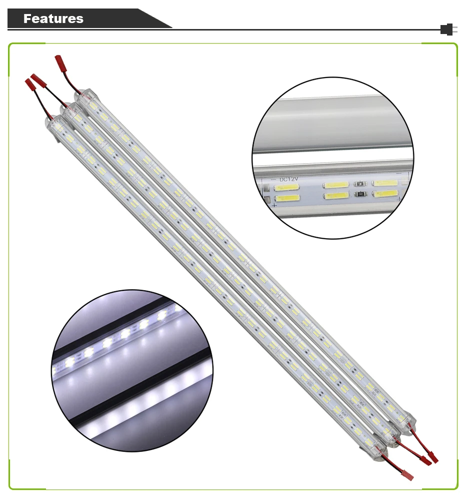 Особенности: 100% новый бренд. Супер яркий двухрядный 8520SMD, высокая интенсивность и надежность. Длительный срок службы 50000 + часов Низкая потребеление энергии Мощность: 5-7Watts/50 см светильник бар Полностью гладкий и ровный светильник, устраняющий неровные световые проблемы Ультра-яркий, но работает при низкой температуре Высокая яркость, низкий уровень мощности, долгий срок службы, простота установки, изготовление на заказ, Декоративный эффект-блестящий, энергосберегающий, экологически безопасный. Параметры: Модель: OY-YDT-34 Светодиоды: 72 светодиодов/шт (0,5 м) Длина: 50 см Напряжение: DC12V Мощность: 0,1 W/led Люмен/светодиодные лампы: 720-1080LM/0,5 м Цвет: холодный белый, теплый белый Чип: SMD 8520 Гарантия: 2 года (Чип на плате) Срок службы: 50000 часов Класс защиты: IP22 Разъем: u-образный разъем из алюминиевого сплава Цвет: Теплый белый: 2800-3200k; Белый: 5500-6500k Применение: Дизайн интерьера, например, украшение дома, отеля, KTV, бара, дискотеки, клуба и т. Д. Архитектурный дизайн, например, декоративное освещение для строений, декоративное освещение и т. д. Рекламные проекты, такие как уличные светящиеся вывески, украшение билборда и т. Д. Дизайн дисплея, например, украшение шкафа для напитков, обувного шкафа, ювелирной стойки и т. д. Подводное освещение, например, украшение аквариума, аквариума, фонтана и т. д. Городское украшение, ландшафтный дизайн, праздничное украшение и так далее.