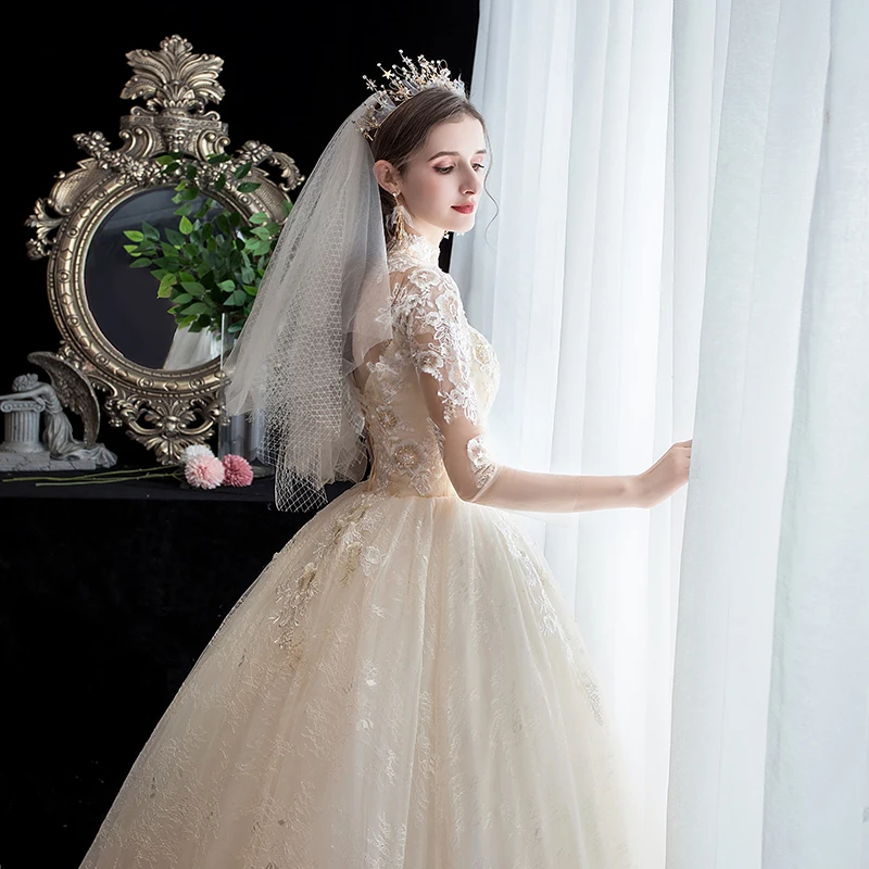 Женское свадебное платье с блестками LAMYA кружевное бальное из фатина бусинами и
