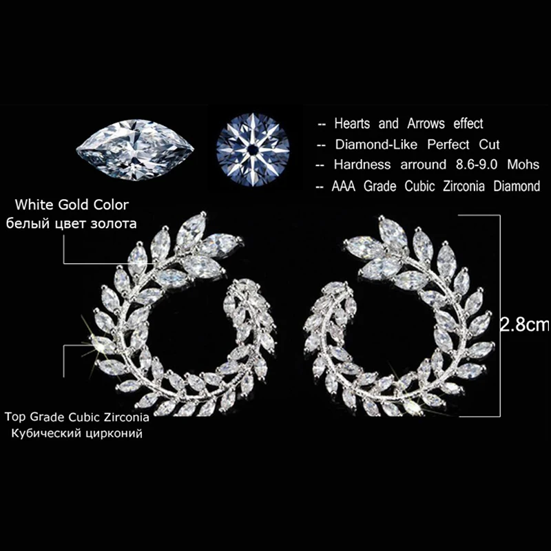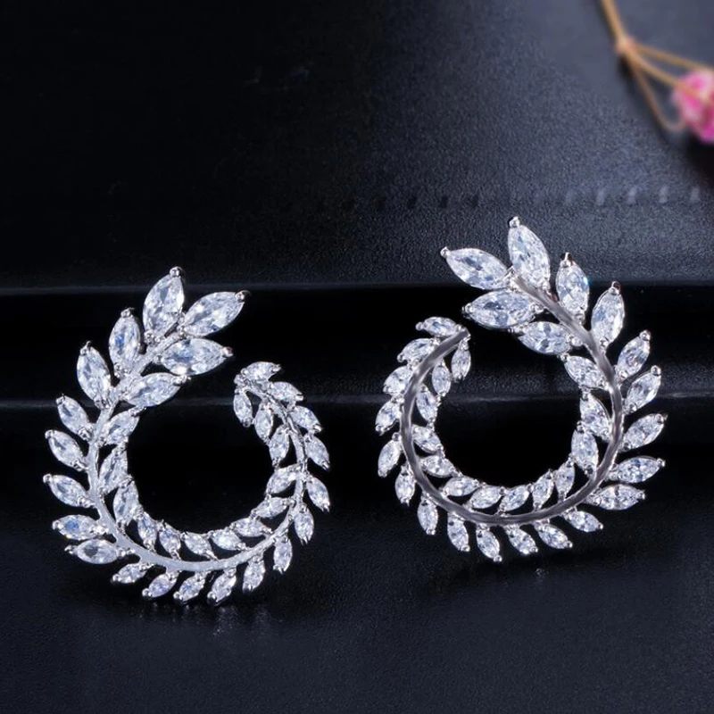 ZN Новый Блестящий лист оливковой ветви в форме огранки маркиза большие серьги с цирконием кубической огранки для женщин модные ювелирные изделия подарки