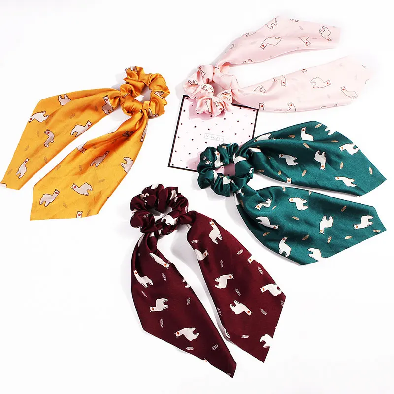 Женские Галстуки для волос с цветочным принтом для девочек, ленточные резинки для волос, шелковый шарф с конским хвостом, повязка на голову, аксессуары для волос