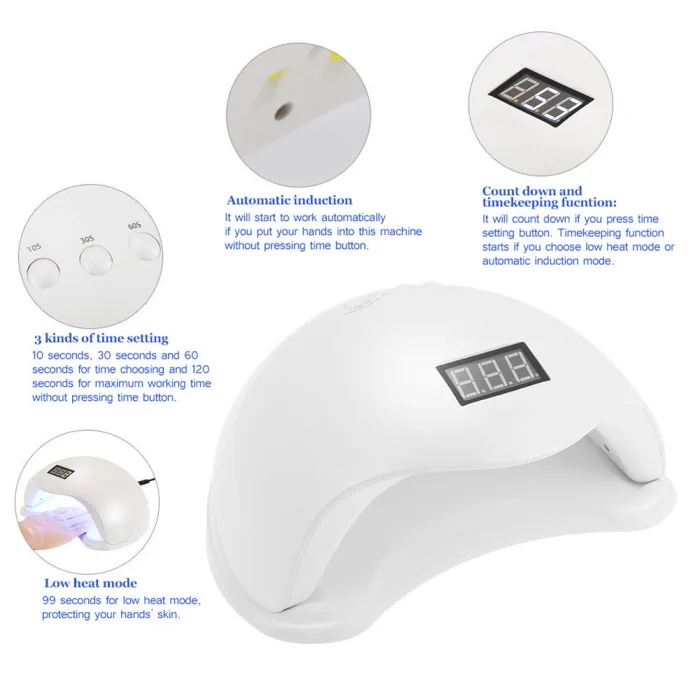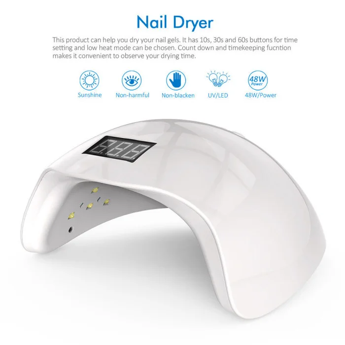 Этот продукт специально разработан для нейл-арта и мощностью 48 Вт, может использоваться для быстрого и эффективного высыхания УФ-и светодиодного геля.
