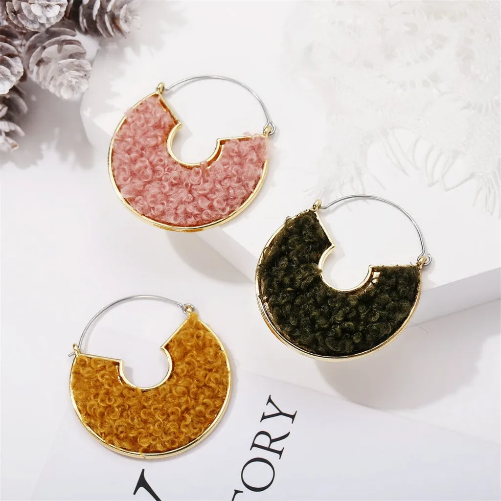 Полу-круглые заполненные плюшевые серьги ретро темперамент c-типа серьги женские
