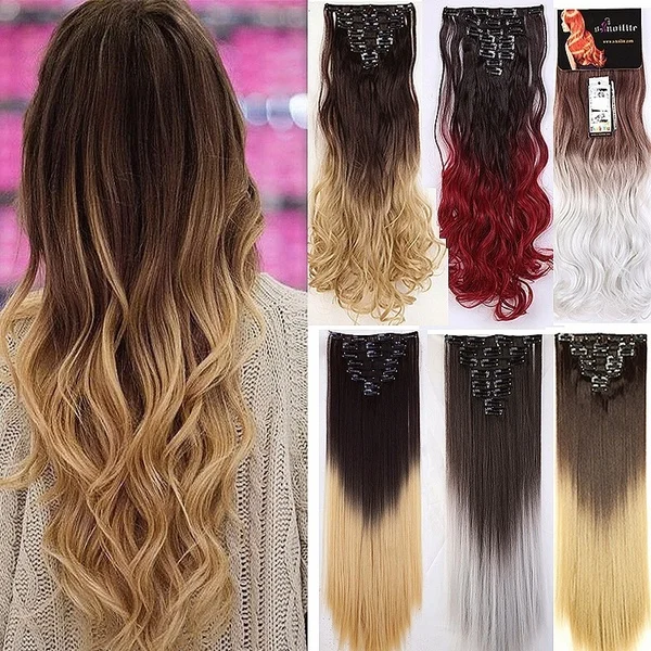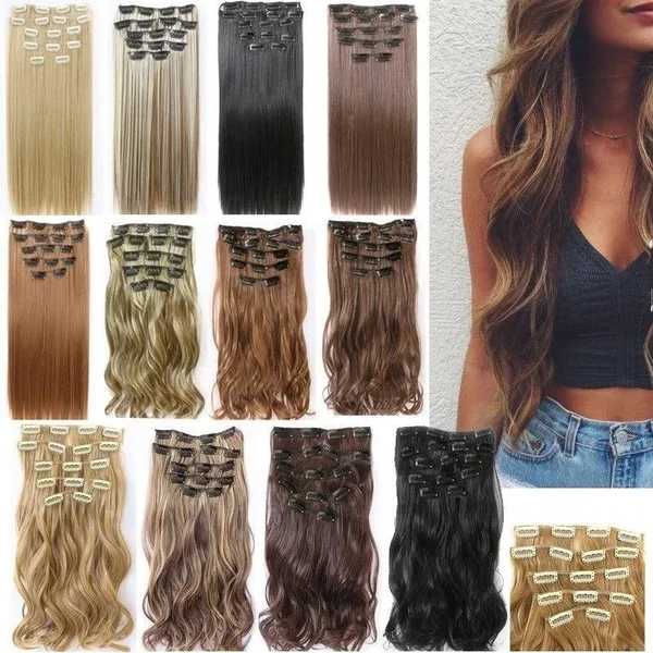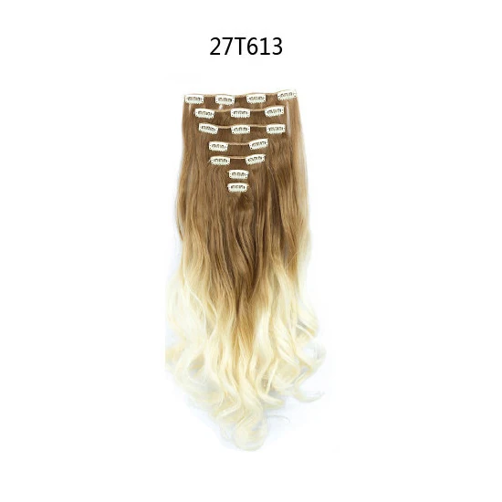 Структура: вьющиеся Длина: 22 дюйма Вес нетто: 140 г Вес брутто: 175 г Тип наращивания: 18 клипов для наращивания волос (8 шт.) Цвет: темно-черный, темно-коричневый, средний коричневый, пепельный блонд, отбеливатель блонд, смешанный цвет Материал: 100% высокотемпературное волокно (можно свернуть до 140 градусов Цельсия) Материалы: Синтетический