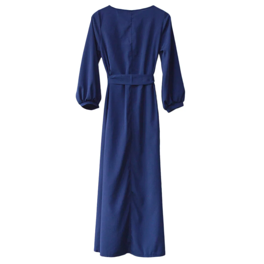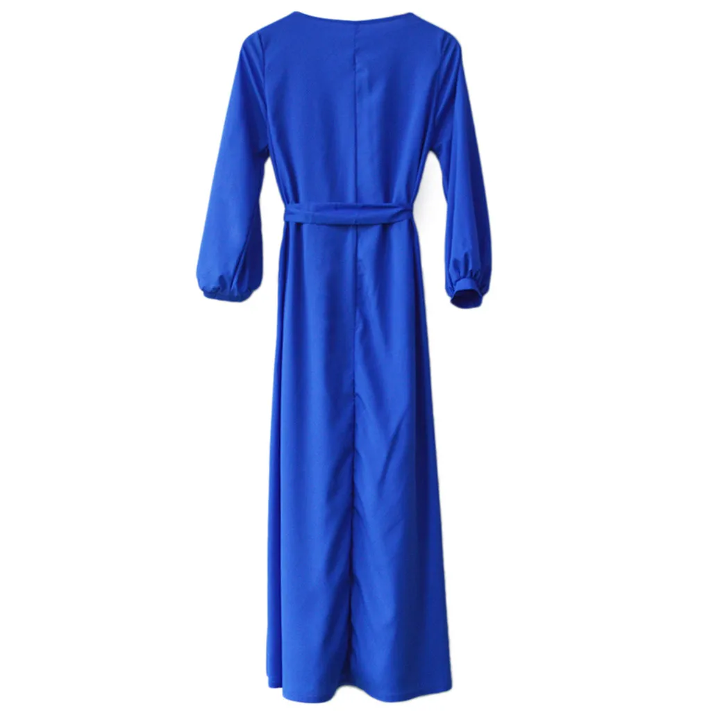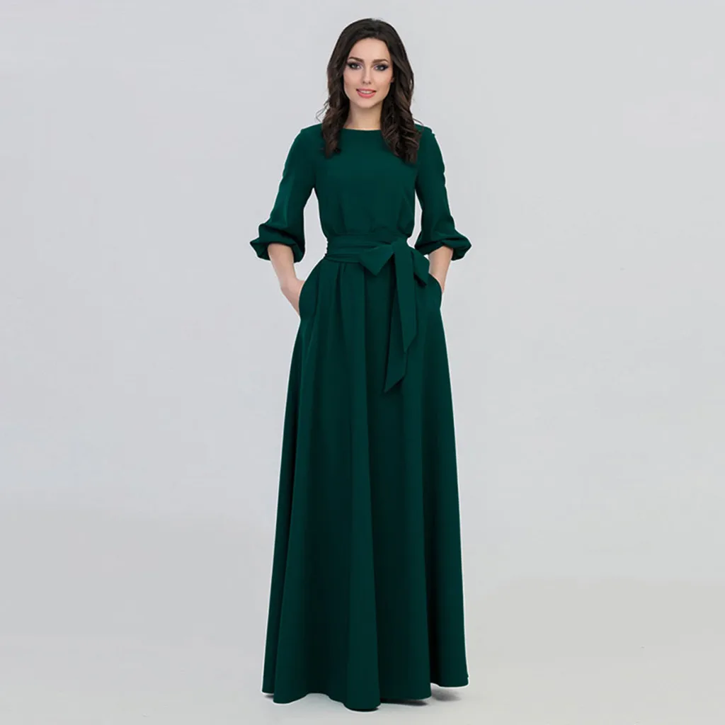 2019 Новый длинным рукавом однотонные Длинные платья осеннее платье элегантное платье размера плюс, Женские Летние Повседневные Вечерние платья фонарь с поясом Femme # м
