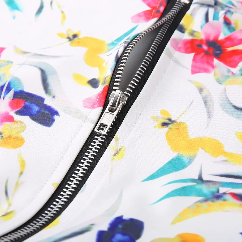 Женская куртка на молнии с цветочным принтом в стиле ретро, повседневные топы, верхняя одежда