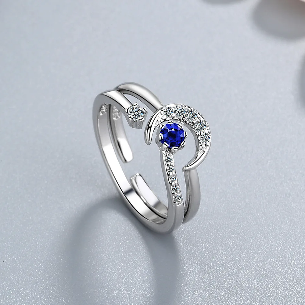Новое поступление кольцо с синим фианитом Луна Звезда открытый палец из стерлингового серебра 925 пробы Регулируемые кольца для свадебной вечеринки ювелирные изделия для женщин Подарки Материал: cz циркон серебро Состояние: 100% новый бренд Повод: вечерние/Свадебные/Помолвочные/День рождения/День Святого Валентина/День Матери Размеры: Регулируемый