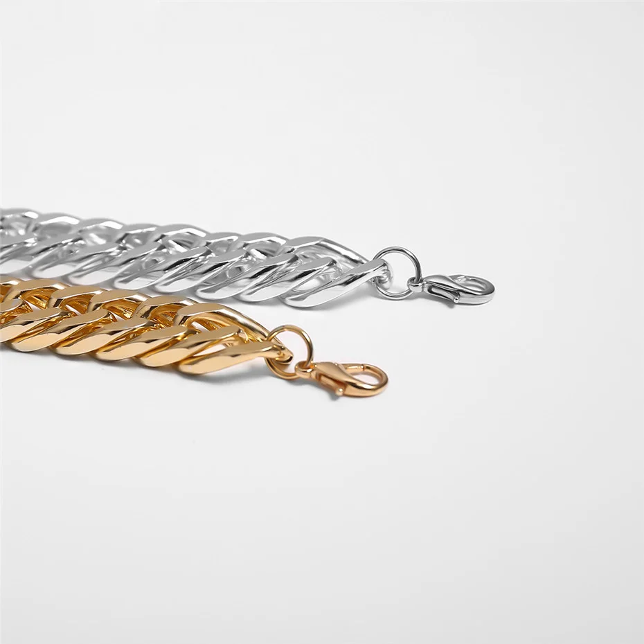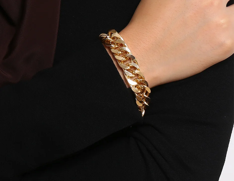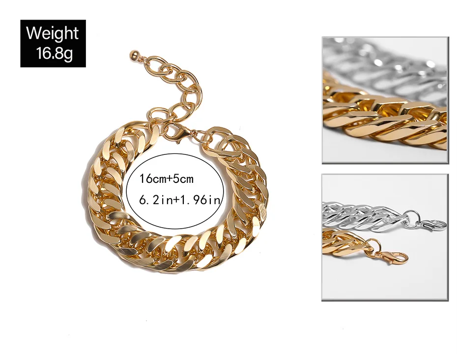 PuRui хип-хоп массивный браслет-цепочка для рук из алюминиевого металла, толстая цепочка, браслеты для женщин, модные панк ювелирные изделия, Серебряное золото Материал: алюминий Размер: как показано на картинке Тип: готический/панк/Рок/хип-хоп ювелирные изделия Посылка включает в себя: 1 простой браслет-цепочка