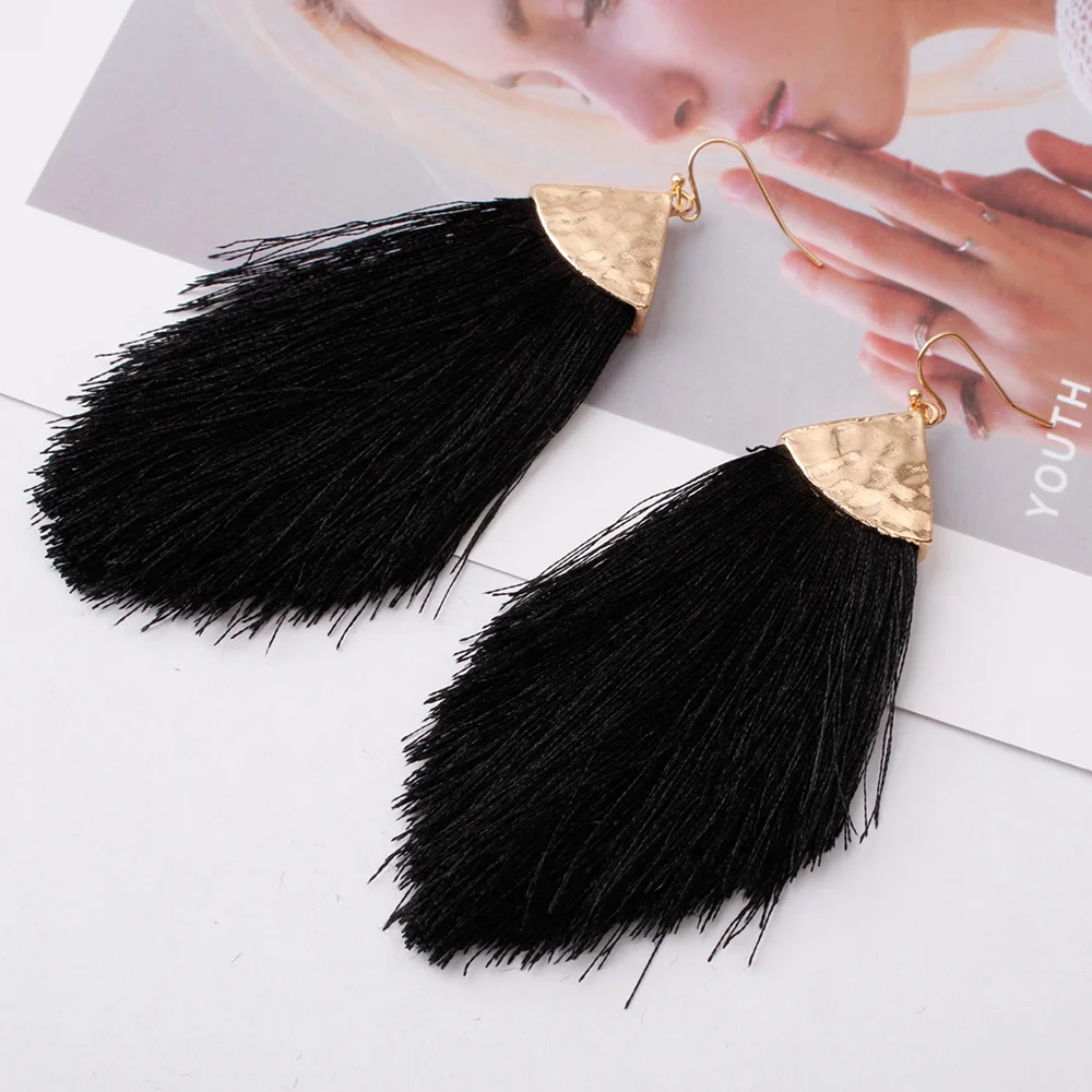 Винтажные серьги-кисточки, висячие серьги с золотыми крючками, серьги с бахромой, богемные массивные серьги для женщин и девочек, повседневная одежда/вечерние